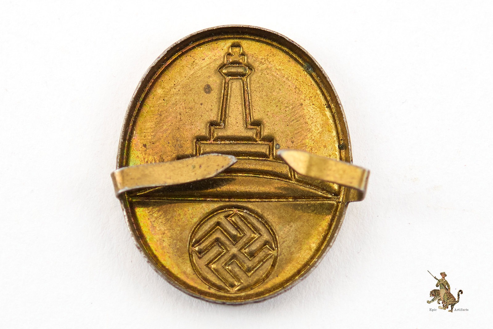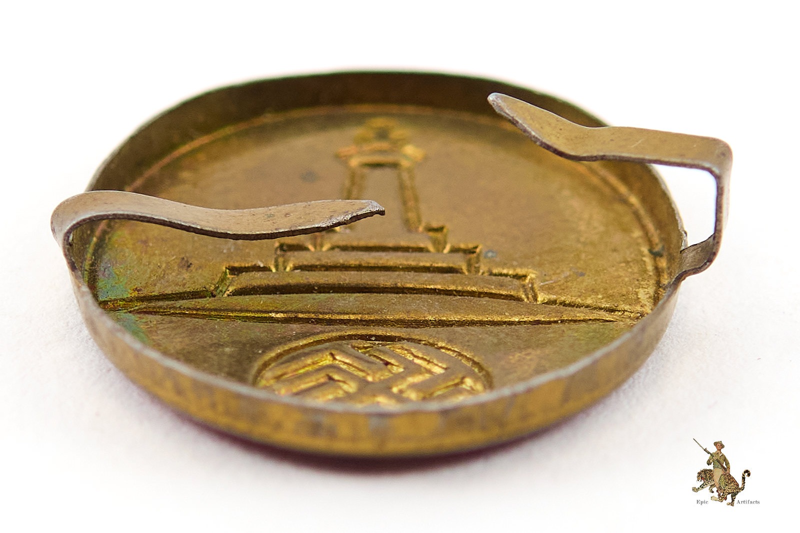 Product Description: An original cap badge of the Kyffhäuserbund, the national German war veterans’ association, worn by members in the interwar period and early Third Reich era. Struck in die-formed metal, the badge features the iconic Kyffhäuser Monument. Finished with painted detailing, this example is in excellent condition, showing only minor paint loss consistent with light age and wear. Both original attachment prongs remain intact and fully functional.