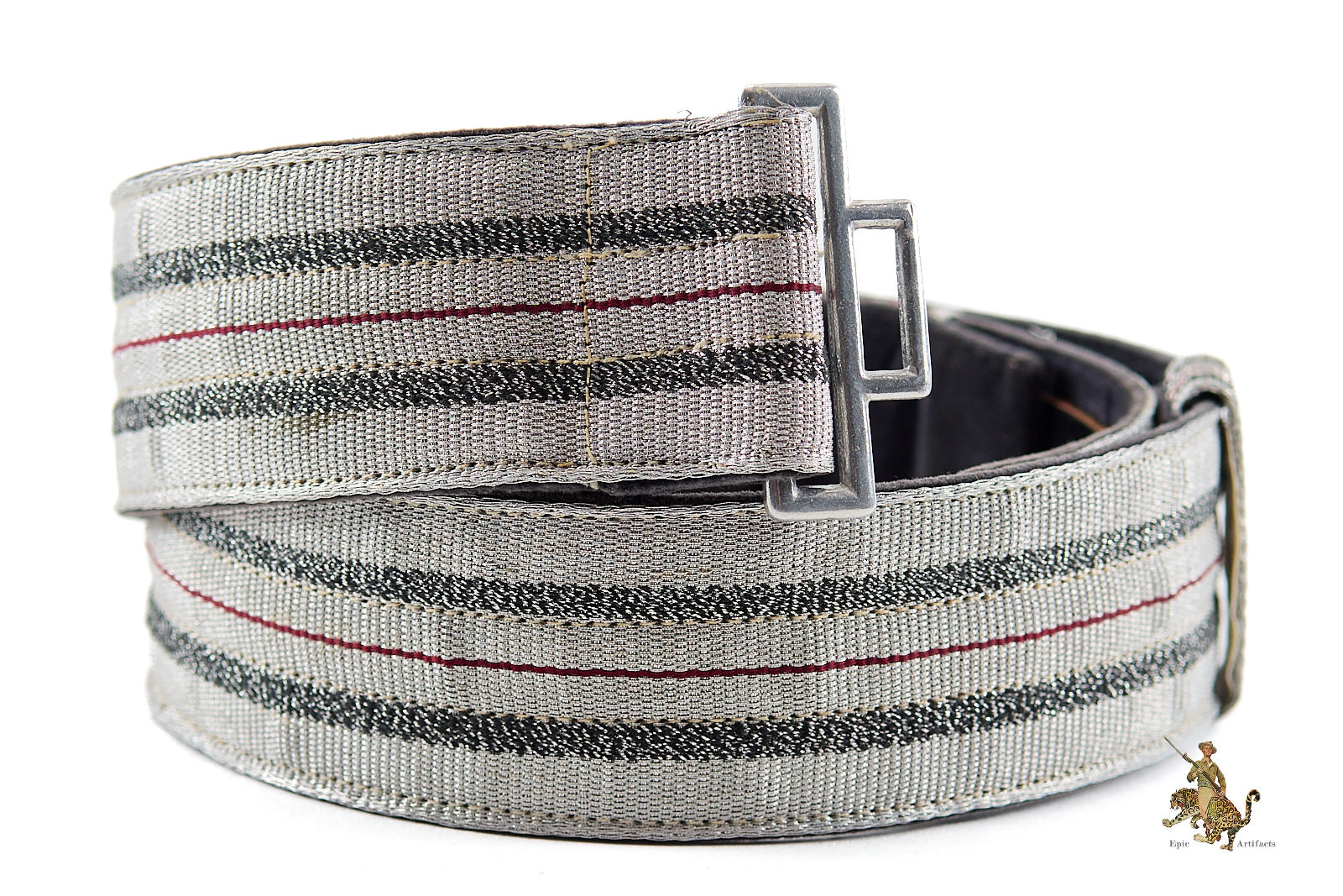 Product Description: This is an exceptional Luftwaffe Brocade Belt & Buckle Cased – Assmann, an offering that would be nearly impossible to upgrade. This set remains in stunning, near-mint condition. The buckle is made of bare aluminum and exhibits virtually no wear, with all of its intricate original details fully intact. The reverse is nicely marked, featuring the Assmann makers mark. The buckle is completely original with no damage or repairs. It is accompanied by its original and Luftwaffe brocade belt, constructed of woven aluminum wire with a blue gray velour backing. The set is housed in its original red leatherette case with a red velour interior lining. Due to age, the top lid separated, but this does not detract from the overall presentation. This Luftwaffe Brocade & Buckle Cased – Assmann set, complete with its original case, is in exceptional near-mint condition, making it a museum-worthy collectible and a top-tier addition to any collection. Overall the Condition of this Luftwaffe Brocade & Buckle Cased – Assmann is in near mint condition.