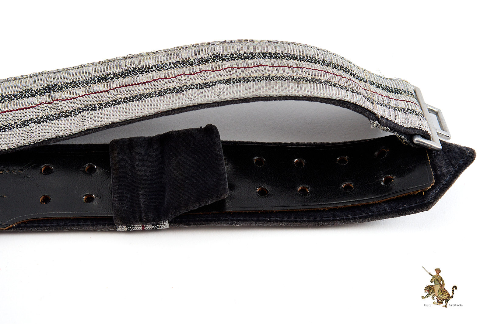 Historical Description: The SS brocade belt and aiguillette were part of the ceremonial and parade dress uniforms worn by high-ranking members of the Schutzstaffel (SS), particularly in formal events, state functions, and honor guard duties. These elaborate accessories signified prestige and authority within the SS hierarchy. The “RMZ 35/38” marking on the buckle corresponds to the Reichszeugmeisterei (RZM) approval system, which regulated and standardized Nazi-era equipment and insignia. Period-correct SS brocade belts and aiguillettes are scarce, particularly when found with their original storage case, making this set a highly collectible and historically significant piece for advanced collectors of Third Reich militaria.