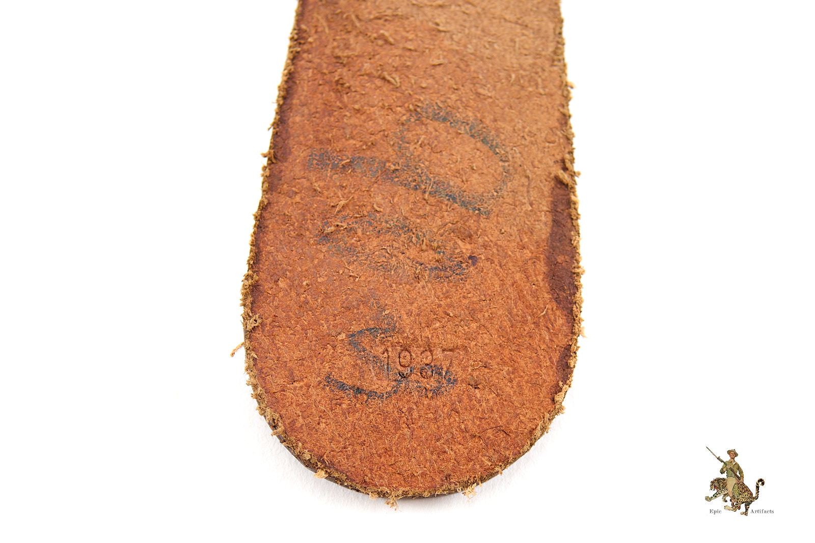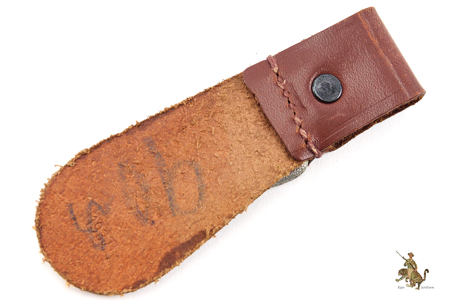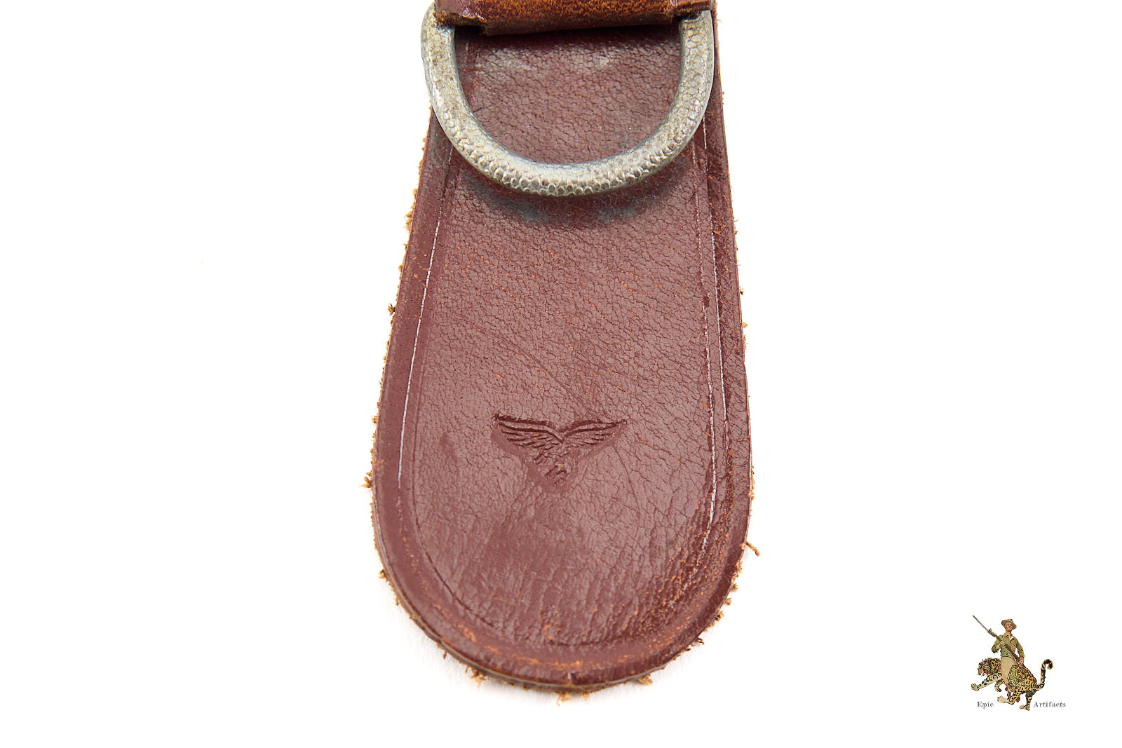 Product Description:This Luftwaffe Dagger / Sword Hanger – Brown is an excellent brown leather example, remaining in near mint condition. Marked with Luftwaffe eagle on front and 1937 date on back. The leather surface shows little to no wear, with strong color throughout, and all original stitching is fully intact and tight. Overall, this Luftwaffe Dagger / Sword Hanger – Brown displays beautifully and rates near mint, an outstanding accessory for completing a Luftwaffe setup.