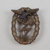 Historical Description: In the early days of WWII, the German Air Force had few units intended to serve as infantry. As the war progressed, and especially after the disastrous first winter on the Eastern Front, more and more Luftwaffe personnel were being engaged in ground combat on the front lines. To recognize the combat experience of these soldiers, Luftwaffe chief Hermann Goering introduced the Luftwaffe Ground Assault Badge on March 31, 1942. The badge had been designed by Sigmund von Weech and featured a Luftwaffe eagle and swastika emblem atop a wreath, within which was a storm cloud striking the earth with a bolt of lightning. Those Luftwaffe soldiers who had previously been awarded German Army ground combat badges such as the Infantry Assault Badge, General Assault Badge or Panzer Assault Badge, were to exchange them for the new Luftwaffe badge. To earn this badge, Luftwaffe soldiers had to survive three ground combat actions on three separate days, be wounded in a ground combat action, or to have earned another decoration in such an action. Luftwaffe soldiers killed in ground combat were to receive the award posthumously. Personnel who could receive this award included paratroopers, members of the Luftwaffe Field Divisions, assault gun crews, and even Flak crews tasked with using their anti-aircraft guns against ground targets. On some of these badges, mostly early versions, the Luftwaffe eagle is a separate piece, riveted on. Later in the war, the eagle was most often integral to the badge.