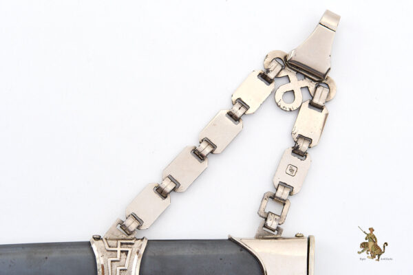 Product Description: This is an exceptional and highly desirable example of the iconic M36 SS Chained Dagger—an outstanding specimen that will immediately stand out in any advanced collection. The dagger is in excellent++ condition overall, exhibiting both historical integrity and impressive aesthetic appeal.