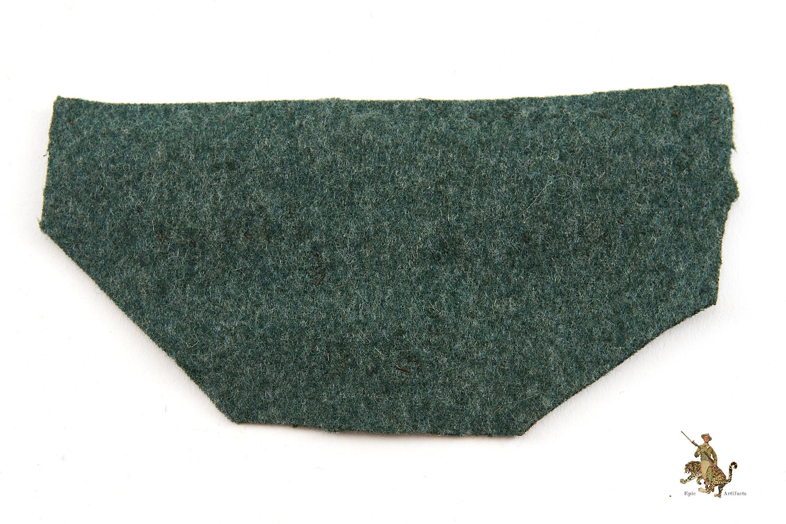 Product Description: This M40 Heer Flatwire Breast Eagle – Cutoff is a unique and very attractive piece. The Army breast eagle is of the pattern introduced in 1934, hand sewn construction, with a silver flatwire German Army eagle and swastika emblem, on emerald backing. This eagle has been neatly folded and zig-zag hand sewn to a piece of typical wartime Feldgray (field gray) wool that has been hand sewn to a uniform tunic. The condition of this M40 Heer Flatwire Breast Eagle – Cutoff is in excellent+ condition.