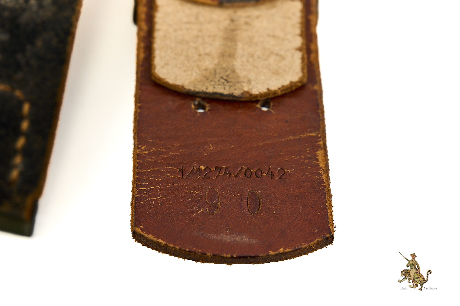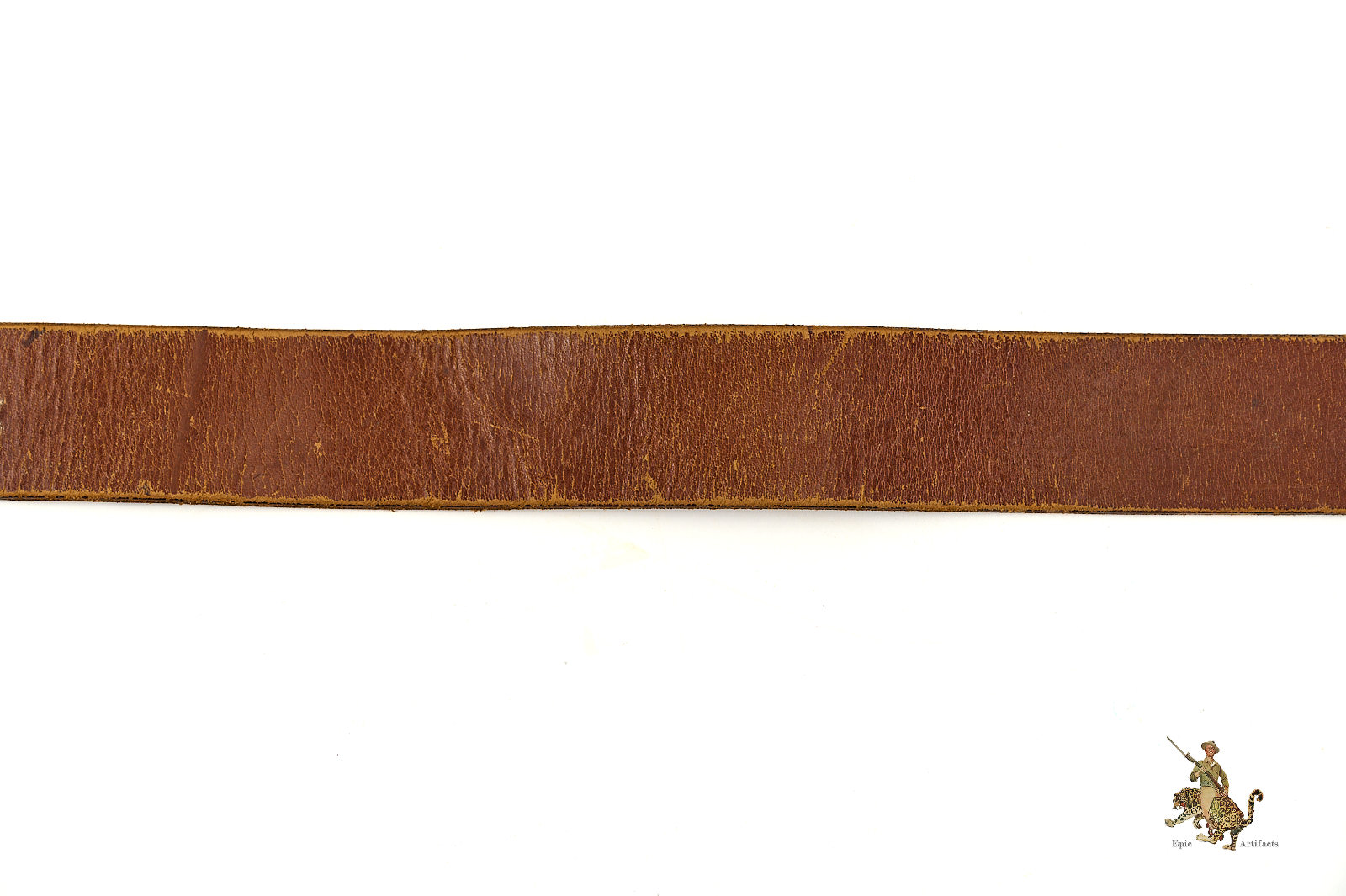 The leather belt is also impressive, measuring approximately 35 ½ inches (marked “90”). The belt remains supple, strong, and completely sound, with no issues or repairs.