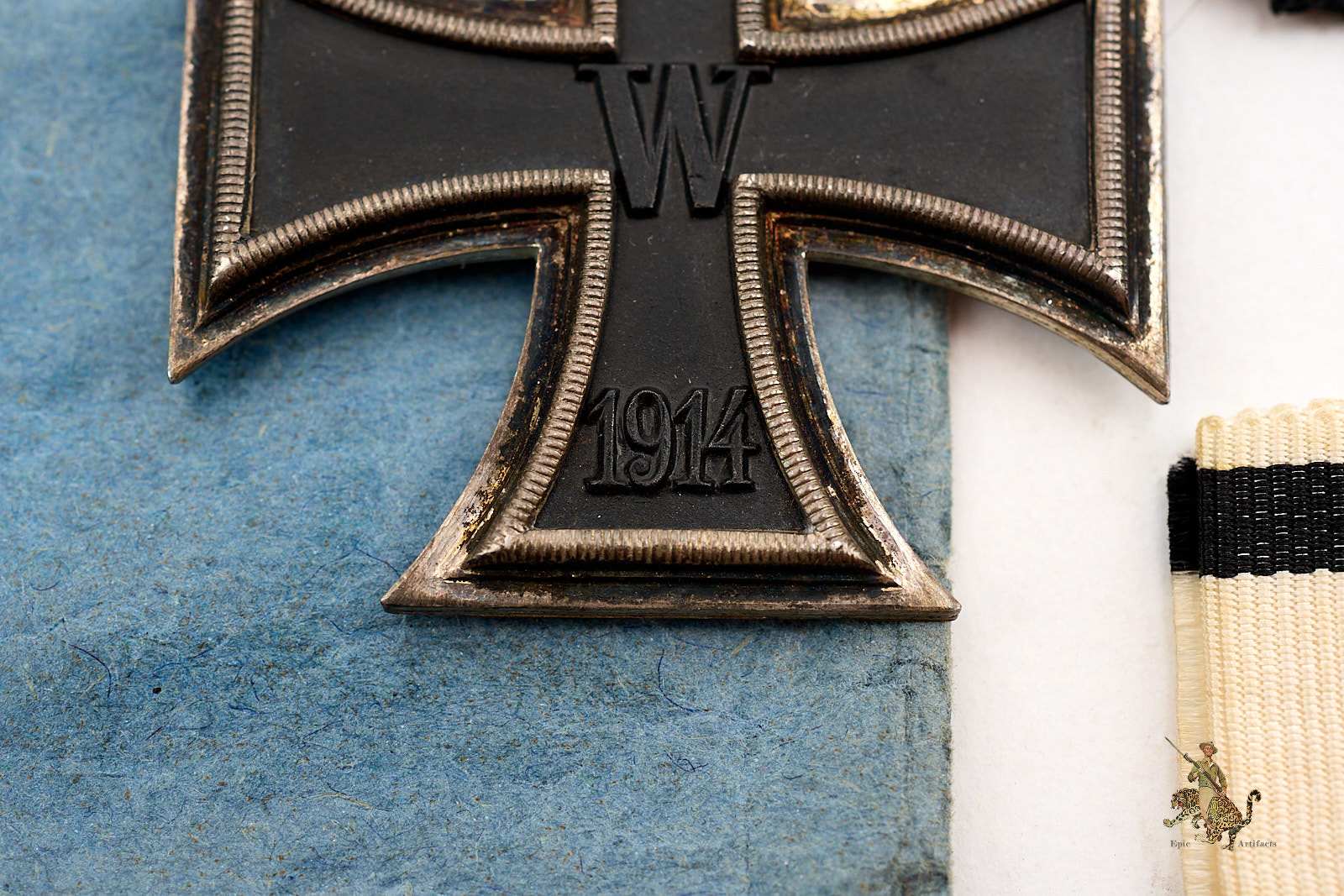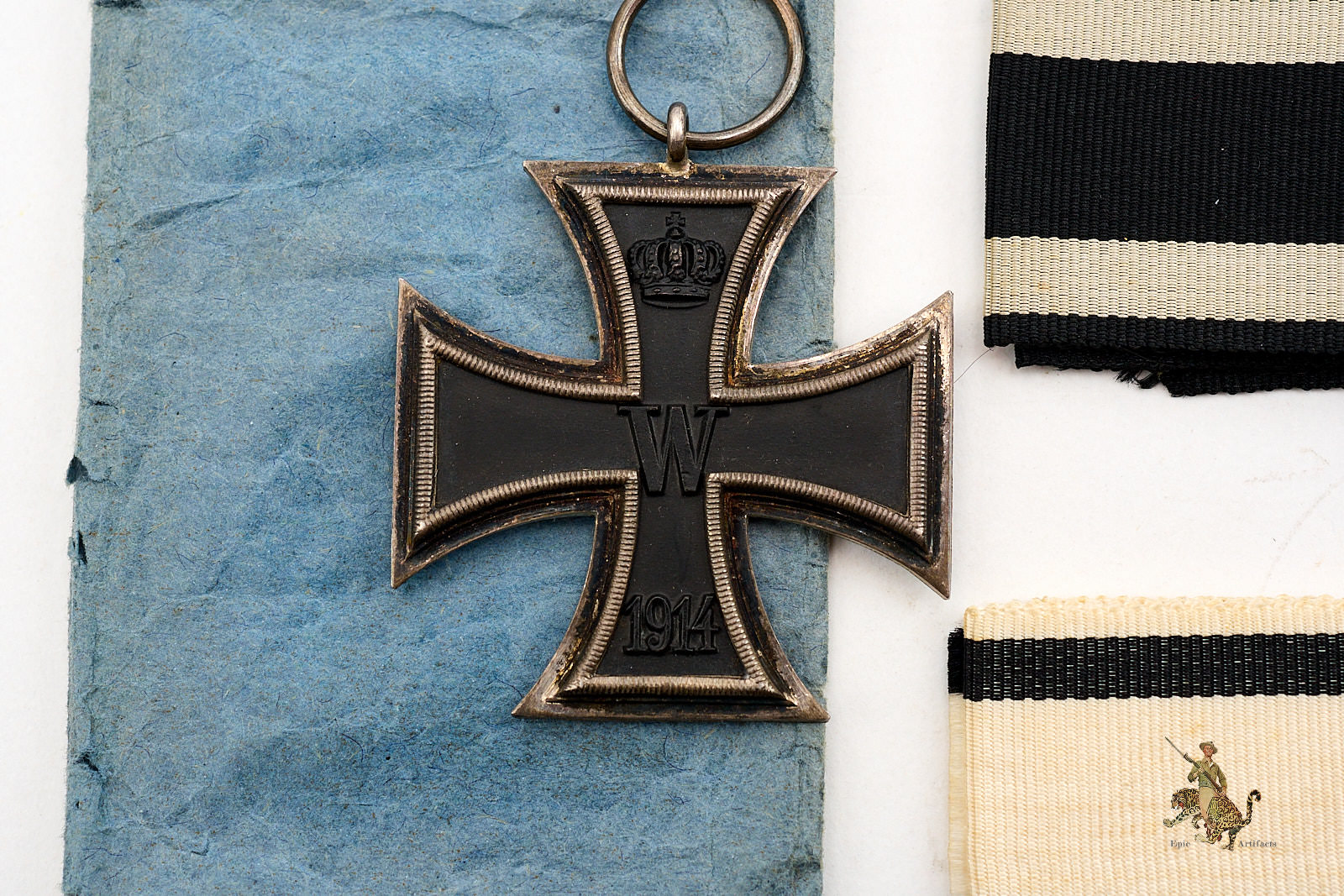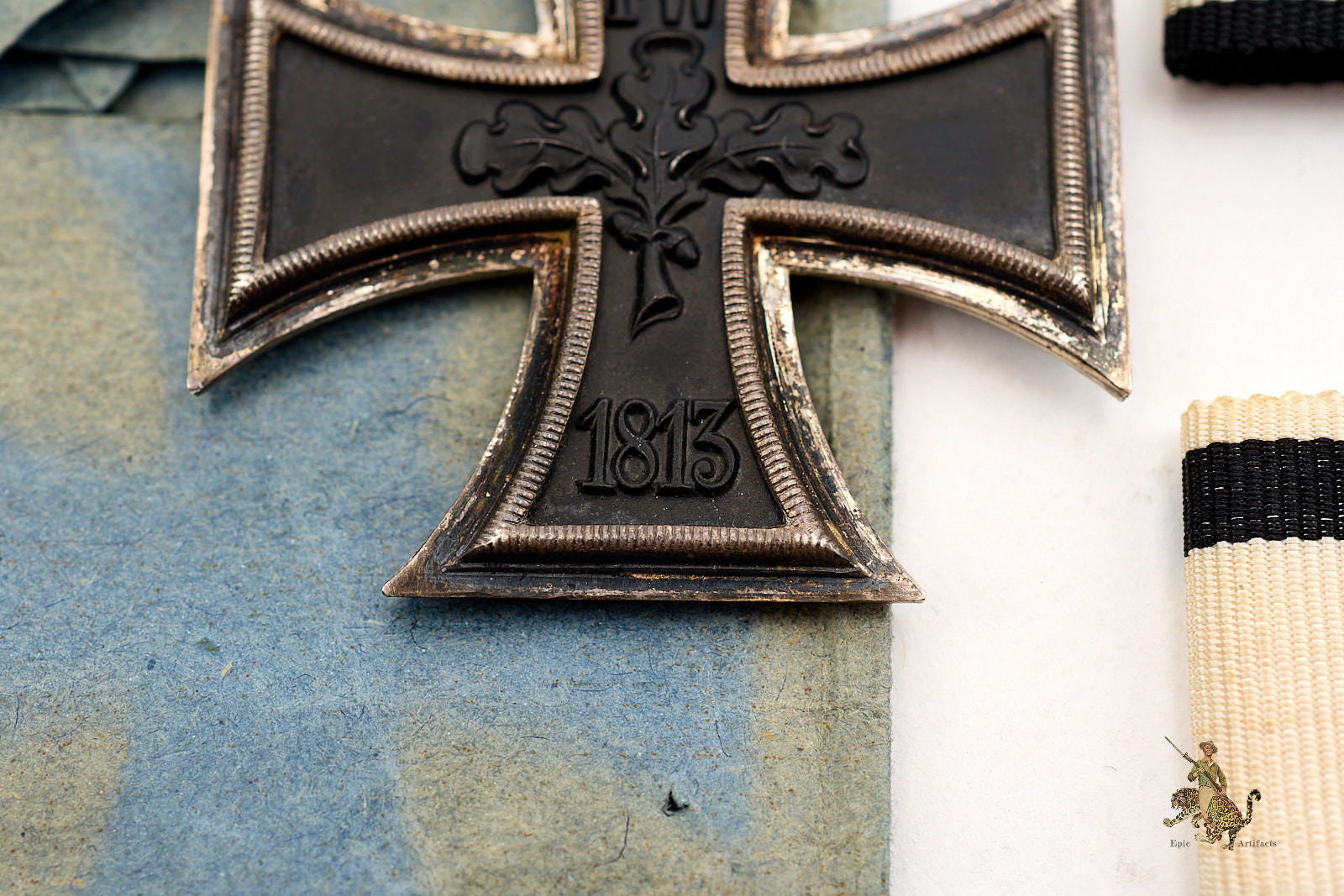 Historical Description: There is no more iconic German military award than the Iron Cross. The long history of this order began during the Napoleonic Wars. King Friedrich Wilhelm III of Prussia instituted the “Eisernes Kreuz” (Iron Cross) in March of 1813. The award criteria changed somewhat with time, but generally speaking, Iron Crosses could be awarded for individual acts of bravery, or for leadership achievements on the battlefield. The design was created by a Karl Friedrich Schinkel, his choice of the black cross with silver outline was derived from the heraldic emblem of the Teutonic Knights. There were a number of different type and grades of Iron Cross awards throughout its long history, but the basic details of the most widely awarded grades: The Iron Cross 1st Class and Iron Cross 2nd Class- remained the same. The first-class award was a breast badge, with fittings on the reverse to allow it to be worn on the uniform. These fittings varied widely over time and from maker to maker, and could be a simple in and catch, a screw post and retaining disc, or more elaborate setups. The second-class award was suspended from a ribbon, originally in the Prussian colors of black and white, later in the Reich colors of black, red and white. On the original versions of these crosses, in 1813, the front of the iron core of each grade was bare, and only the second-class award had ornamentation: a crown over the initials “FW” representing the King, a sprig of oak leaves, and the date 1813. The core was redesigned in 1870, when the cross was re-instituted during the Franco-Prussian War. The reverse ornamentation on the Iron Cross 2nd Class remained the same, but the front of the core on both grades now bore another crown, a “W” representing Kaiser Wilhelm, and the date 1870. This pattern repeated again when the cross was reinstituted for WWI- everything stayed the same, only the date 1870 was replaced with 1914. The final reinstitution of the cross came in 1939. For this version, the front of the core for both grades bore a swastika and the date 1939. The oak leaves, crown and royal initials were removed from the reverse, with only the date 1813 remaining as a reminder of the legacy of this award. In WWII, hundreds of thousands of Iron Cross First Class awards were bestowed, and four and a half million Iron Cross Second Class awards. Iron Crosses were made by a large number of authorized manufacturers Some variants of these awards were mass produced in huge numbers. Others were made in very limited quantities.