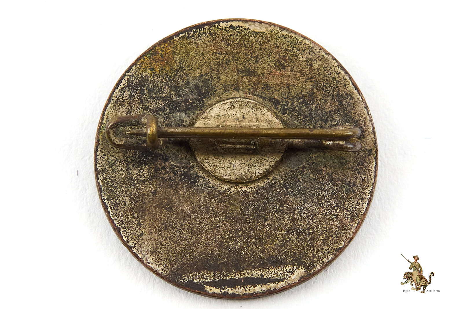 The reverse retains a substantial portion of its original silver finish and is fitted with its original pin and catch, both in sound working order. Unmarked, as is consistent with certain period examples, this NSDAP DSB Membership Badge remains a well-preserved and compelling artifact, notable for its craftsmanship and historical significance.