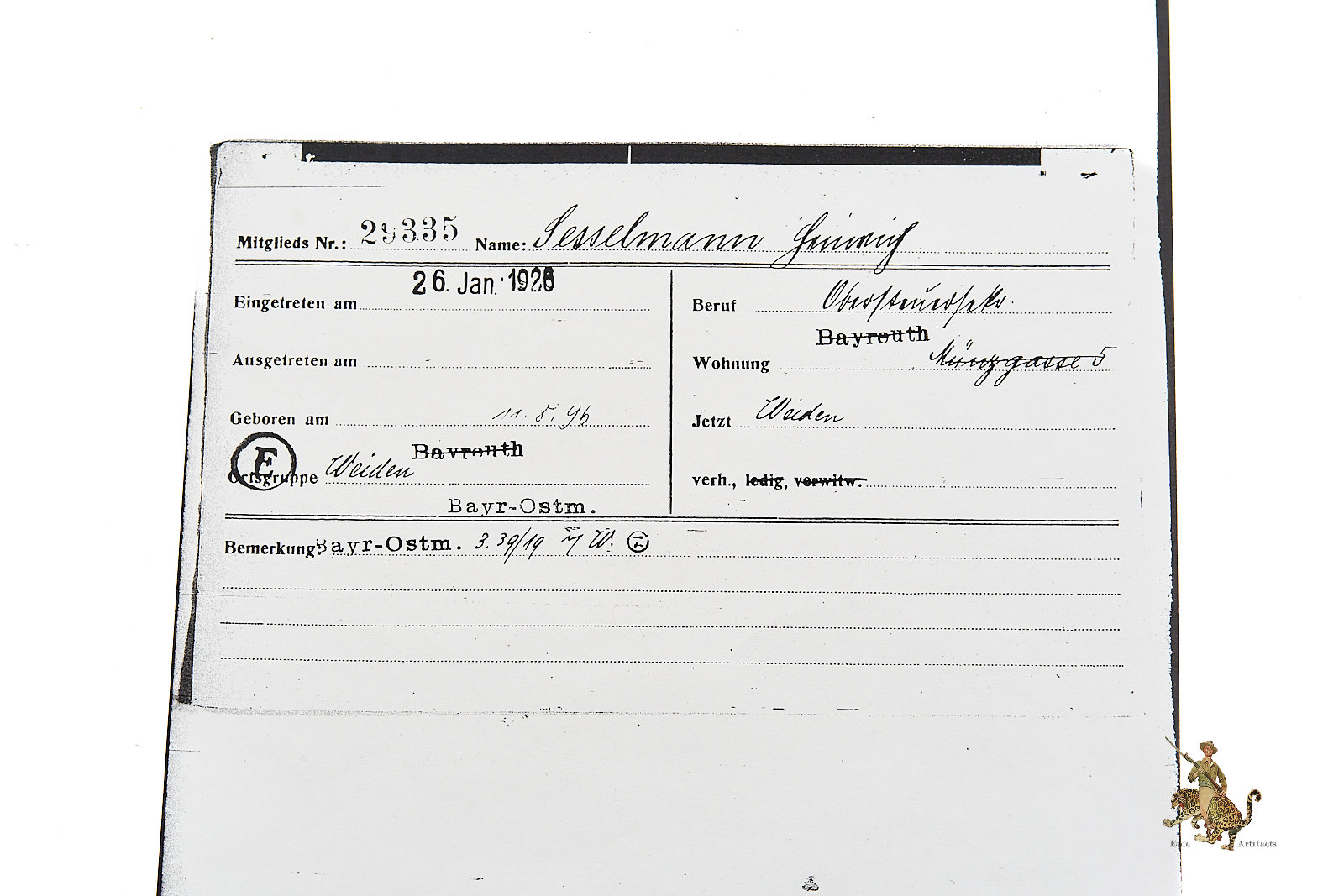 Historical Description: The NSDAP Membership Badge (Parteiabzeichen) was worn by all members of the Nazi Party, on the lapel of civilian clothes, or in some cases on uniforms. The origins of the badge date back to the early days of the NSDAP, and there is much variation among the earliest examples, though this was soon standardized into the form of an enamel pin featuring a black swastika on a white roundel, surrounded by the inscription “National-Sozialistische D.A.P.,” the official name of the National Socialist German Workers’ Party, within a red enamel border. Beginning in 1934, manufacture of the NSDAP membership pins was controlled by the Reichszeugmeisterei, and the reverses of the badges were marked with the RZM logo and maker codes. At some point after the outbreak of WWII, the manufacture of the fine enamel membership pins ceased, and pins were made of silver finished zinc, with painted rather than enameled decoration. Most NSDAP enamel pins had a soldered pin on the reverse, though they were also available with a flat round fitting that allowed the badge to be worn in a buttonhole. Because so many Germans were members of the NSDAP, millions of these pins were made, though some rare variants and early types are hard to find. Even the most common examples are popular among collectors, because of the historical value as well as the iconic, striking design.