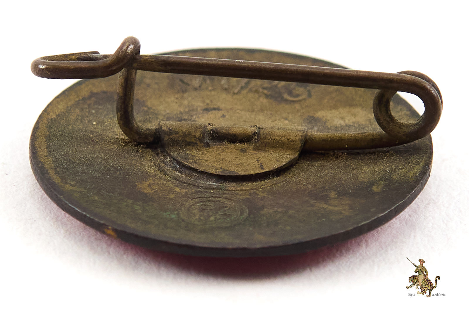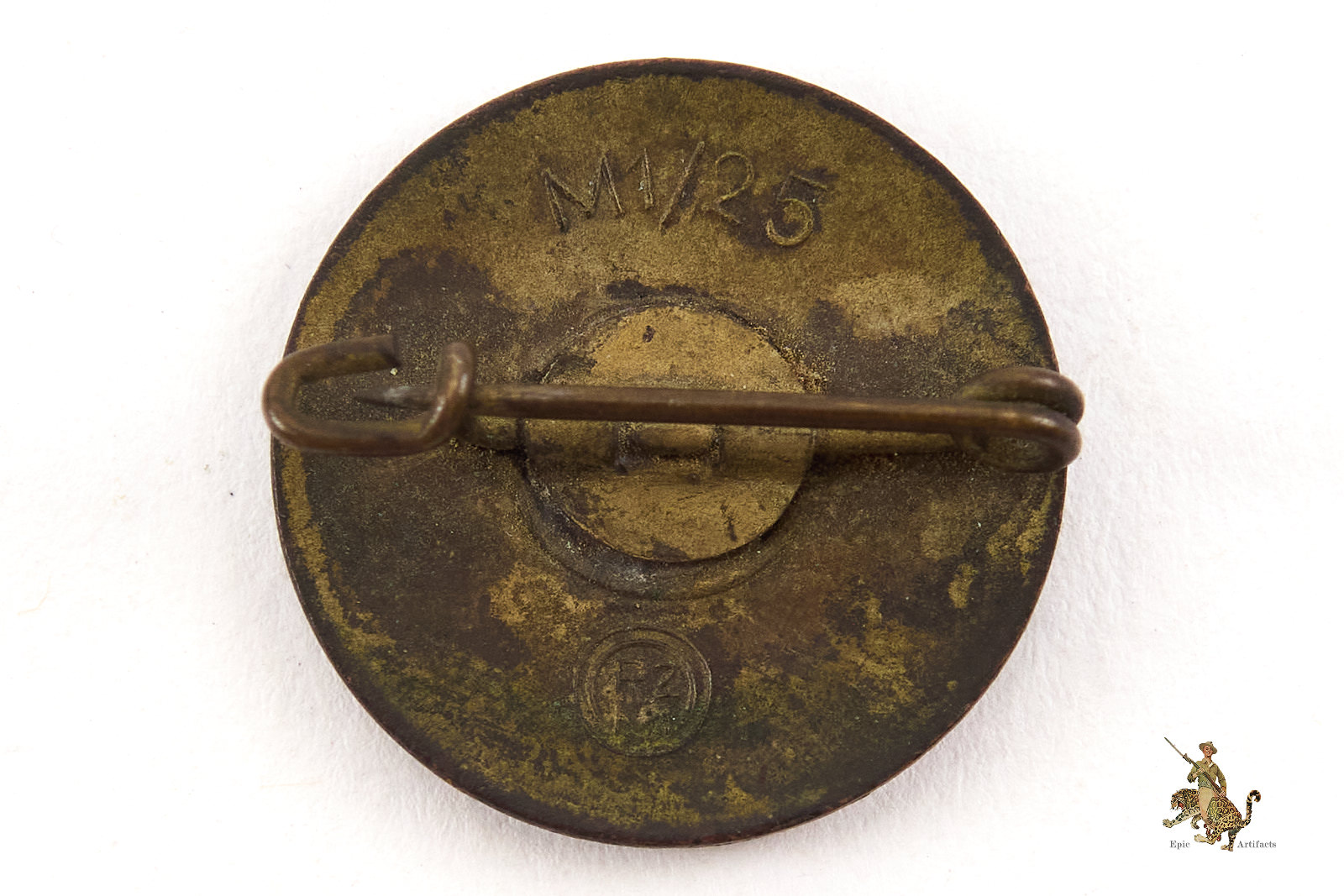 Product Description:This is a lovely example of a desirable enamel NSDAP Membership Party Pin (Parteiabzeichen). This example is made of a brass alloy (Tombak). The obverse has light wear that has worn away the original silver finish, revealing the tombak base metal. The exquisite quality of the enamel which is completely intact, with some light surface wear but no chips or damage. The lovely translucent red enamel reveals a pebbled field, and the pin retains full original color. The reverse of this enamel NSDAP Membership Party Pin is marked with the round RZM emblem of the Reichszeugmeisterei, as well as the maker code “M1/25” indicating it was made by the well-known badge manufacturer Rudolf Rieling, Pforzhiem. The attachment pin is complete and functional and is held in place with a soldered plate. The solder is original and there is no damage and no repairs to note. This membership badge is all original and has a great look. The NSDAP Membership Party Pin condition rates as excellent.