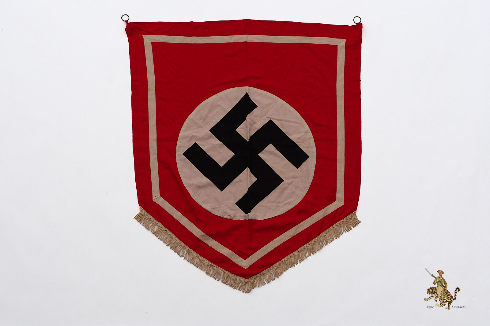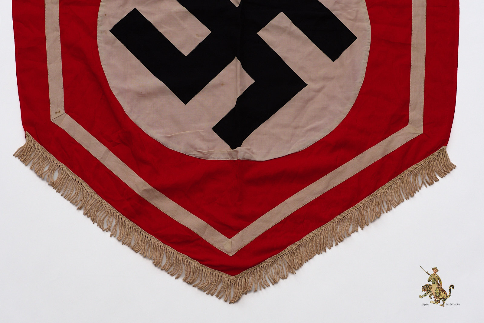 A noteworthy example of its type, this NSDAP Podium Banner 29″ x 34″ offers strong visual integrity and remains in excellent overall condition, suitable for historical study and museum-level display.