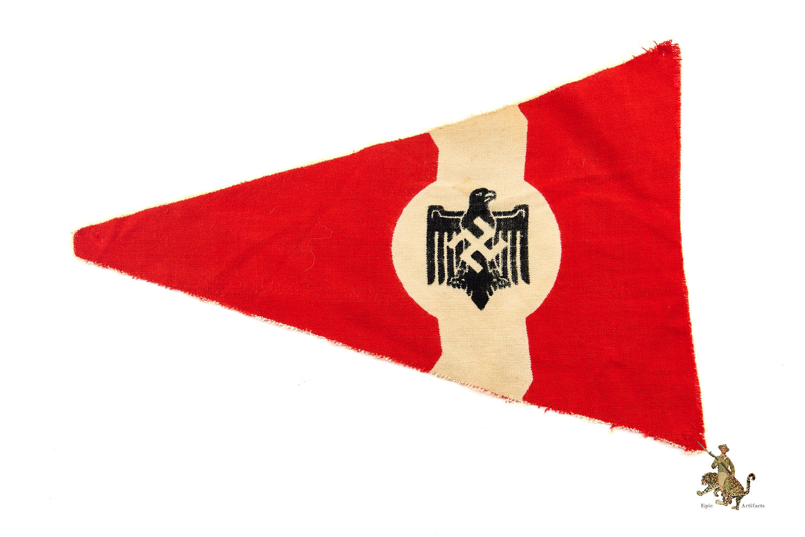 During the Second World War, the NSRL increasingly emphasized pre-military conditioning, while organized sport continued in a limited capacity for propaganda and morale. Flags and pennants played a prominent role at sporting events, ceremonies, and competitions, visually reinforcing loyalty to the regime; these often combined traditional sporting symbols with National Socialist emblems such as the swastika and eagle. As the war progressed, resources and personnel were diverted to the military, diminishing the NSRL’s practical influence. The organization was formally dissolved by the Allied authorities in 1945, along with other Nazi institutions.