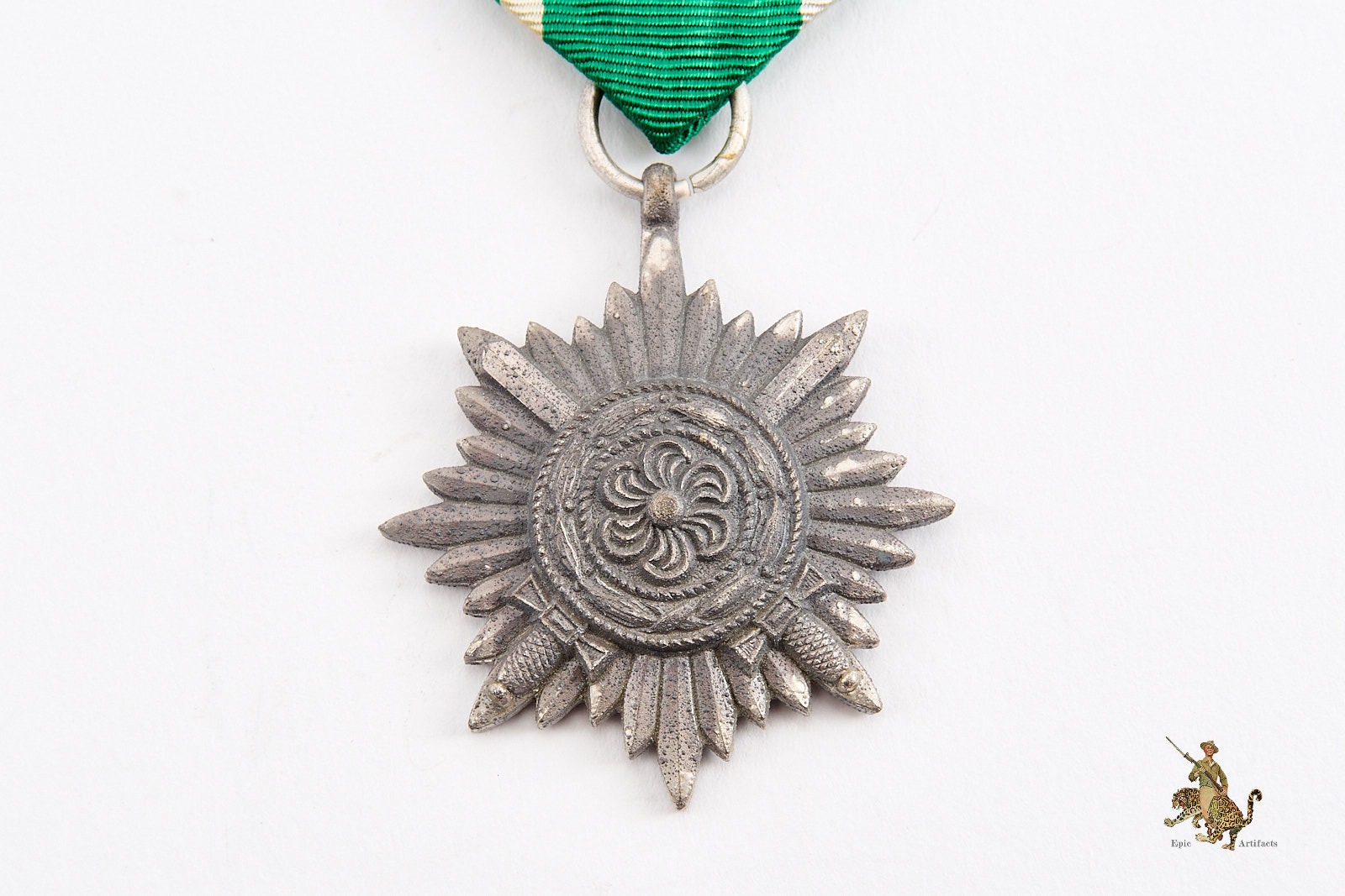 Historical Description: The Ostvolk Medal (Ostvolkmedaille) was originally introduced on July 14, 1942, and was designed by Elmar Lang. The official German designation for the award was “Tapferkeits- und Verdienstauszeichnung für Angehörige der Ostvölker” which translates to :”Bravery and Merit Award for Members of Eastern Peoples.” These awards were intended to reward former citizens of the Soviet Union who served alongside the German armed forces as collaborators, particularly in the Eastern Front. The award was given to personnel including Cossacks, members of Schuma security units, and members of units of the Sicherheitspolizei and SD. By the fall of 1942, German troops serving in units made up of Eastern volunteers were also eligible for this medal. The award was issued in a somewhat confusing array of variations. The First Class award was a pin back award that was worn on the uniform pocket, while the Second Class award was a medal suspended from a ribbon. Both the First Class and Second Class versions were made with swords, indicating bravery, and without swords, which was an award for merit. Both the First Class and Second Class awards, with or without swords, were also made in Bronze, Silver and Gold grades. Only about 7,000 of these, in all grades, were awarded, making this a rather rare award.