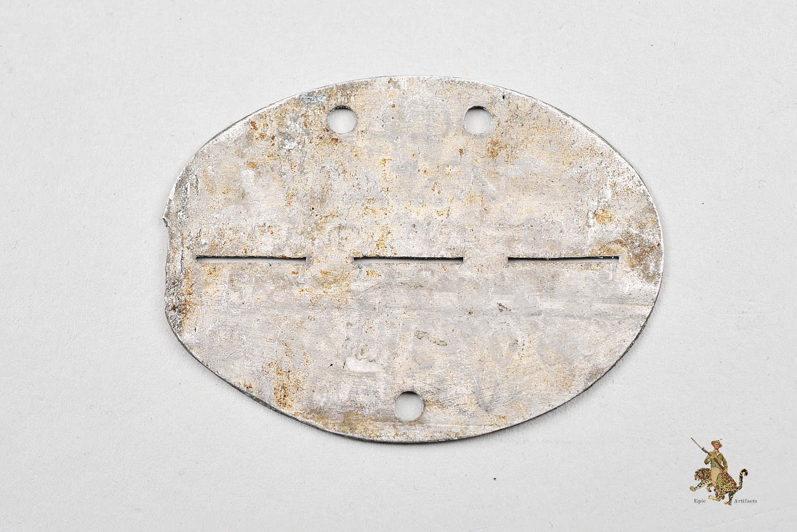 Historical Description: German ID discs were issued to all Wehrmacht personnel during World War II as a means of identifying soldiers in the field. These tags included critical information such as the soldier’s name, unit, and blood type, enabling efficient record-keeping and notification in the event of death or injury. The design allowed for one half of the tag to remain with the body while the other half was collected for administrative purposes. This practice became a key part of military protocol during the war and highlights the emphasis on organization and identification within the German armed forces.