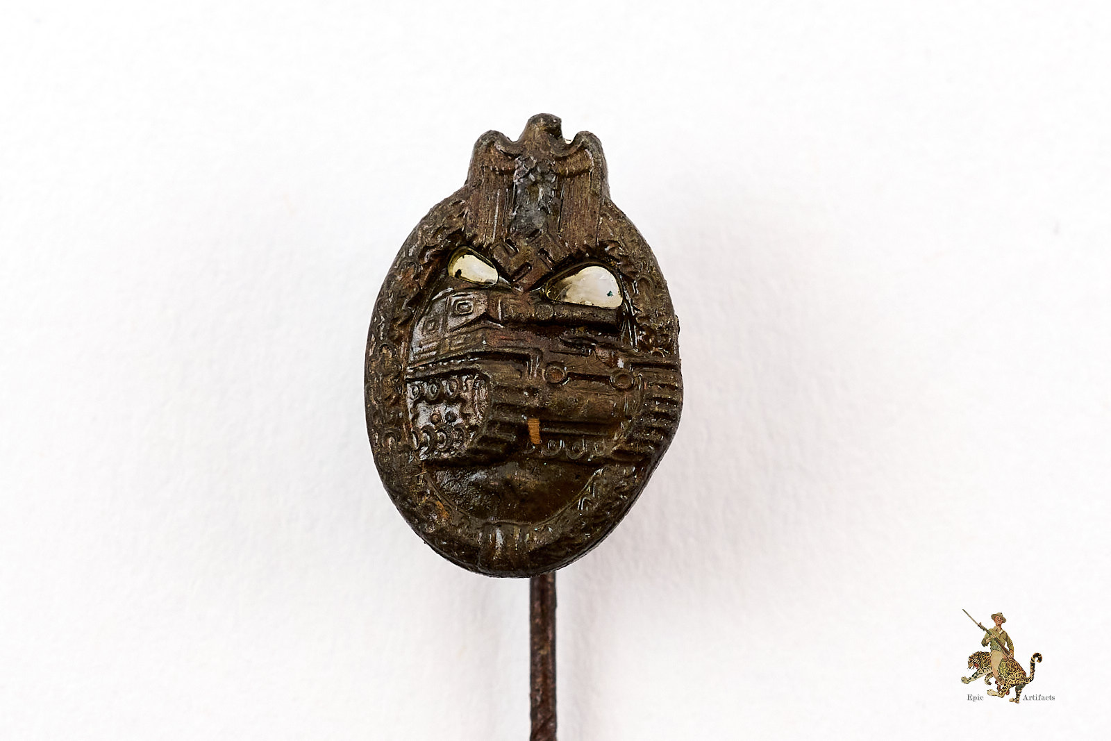 Historical Description:In Germany, during and between the World Wars, stickpins were generally made for wear on civilian clothing, by either men or women. Whereas most civil and military awards intended for uniform wear were in the form of medals or pin-on badges, the simple stickpins were mostly for adorning lapels of suits. A huge variety of these stickpins were produced. There were pins that anyone could buy, that were patriotic or showed support for some specific cause. There were also various membership pins for military, paramilitary, civil and political organizations. Military and civil awards were also produced in stickpin versions. These took the form of miniature versions of the awards, and could either show one individual award, or all the awards that one individual had received. In many cases, German stickpins were made with the same standard of quality as the full-size medals and badges.