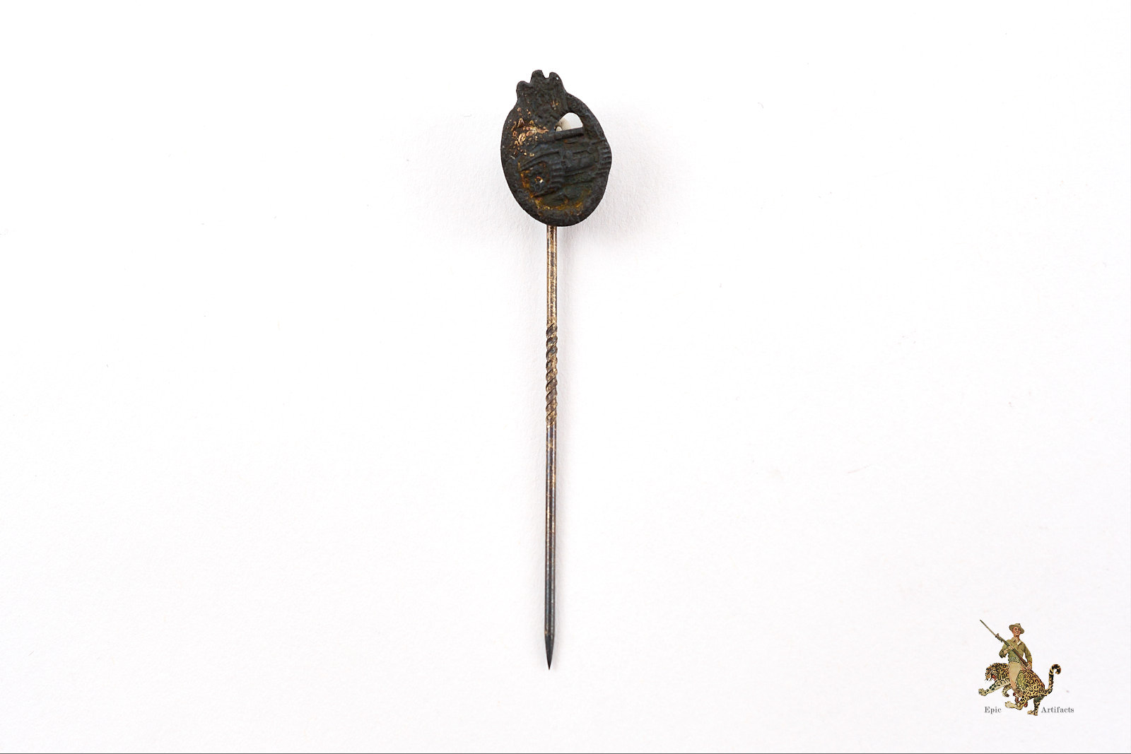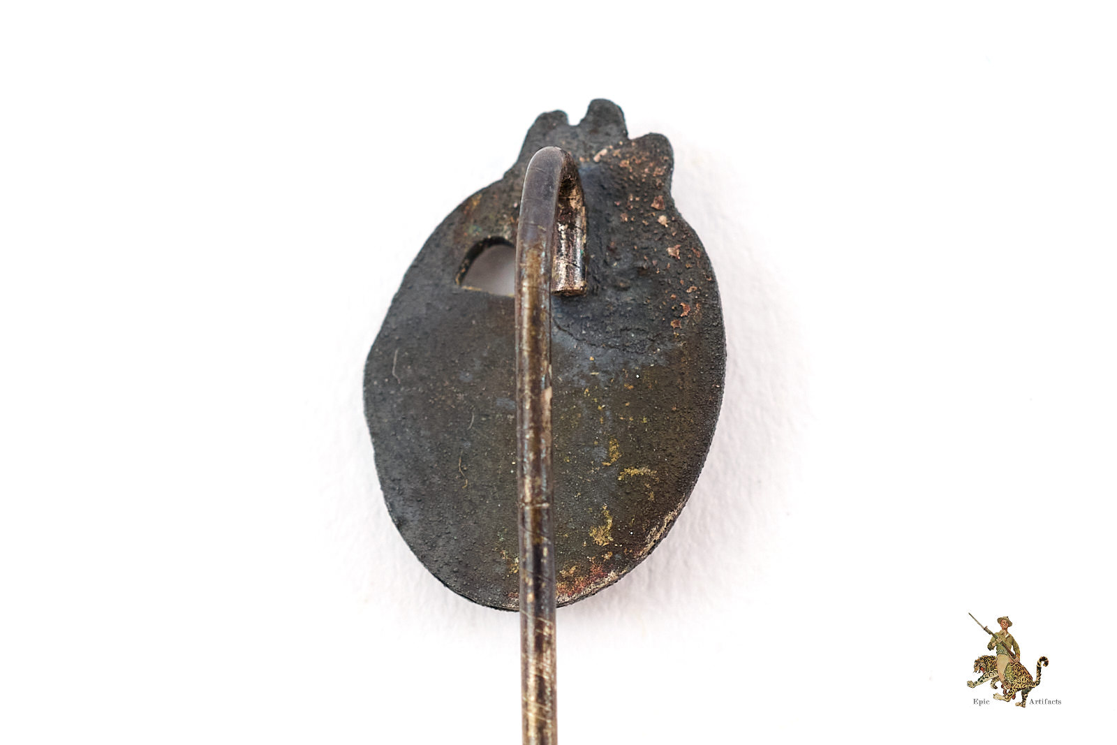 Historical Description:In Germany, during and between the World Wars, stickpins were generally made for wear on civilian clothing, by either men or women. Whereas most civil and military awards intended for uniform wear were in the form of medals or pin-on badges, the simple stickpins were mostly for adorning lapels of suits. A huge variety of these stickpins were produced. There were pins that anyone could buy, that were patriotic or showed support for some specific cause. There were also various membership pins for military, paramilitary, civil and political organizations. Military and civil awards were also produced in stickpin versions. These took the form of miniature versions of the awards, and could either show one individual award, or all the awards that one individual had received. In many cases, German stickpins were made with the same standard of quality as the full-size medals and badges.