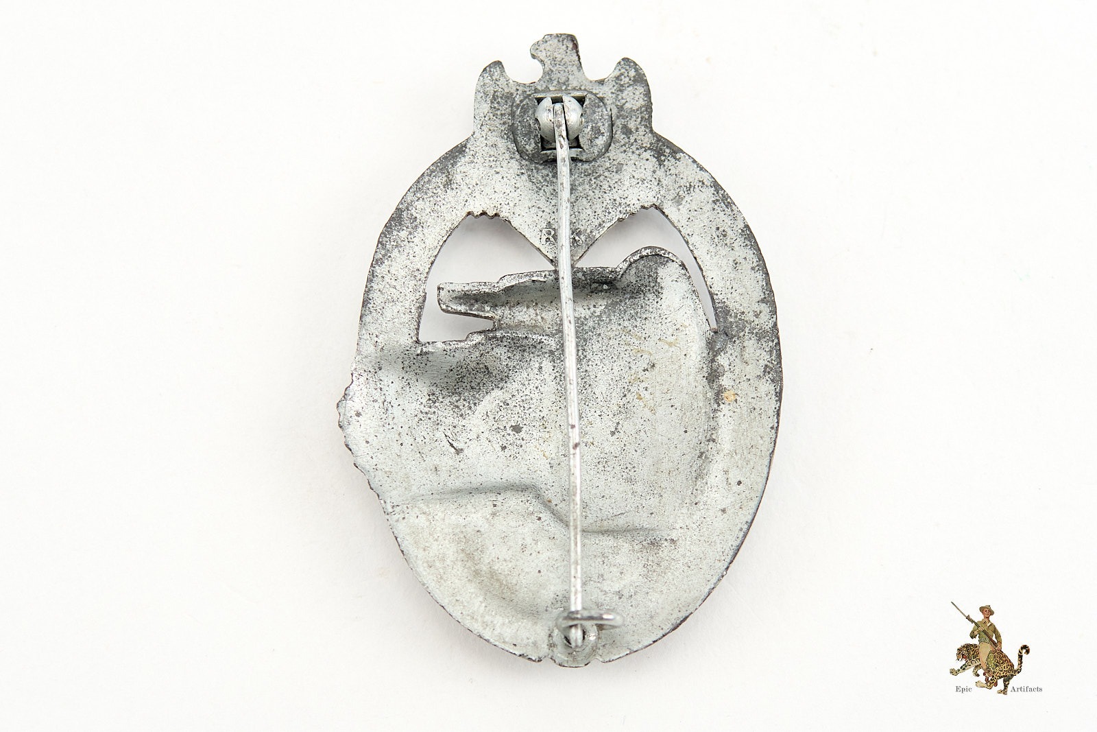 Historical Description: The Panzer Assault Badge was instituted on December 20th, 1939.    It was awarded in the silver grade to Panzer crewman who met the combat requirements. On June 1st, 1940, following the start of the blitzkrieg against France, the bronze grade was introduced to award armoured reconnaissance, motorcycle riflemen, and panzer-grenadier units.  The requirements for both versions were the same, the soldier must have participated in three combat assaults on three separate days to be eligible.
