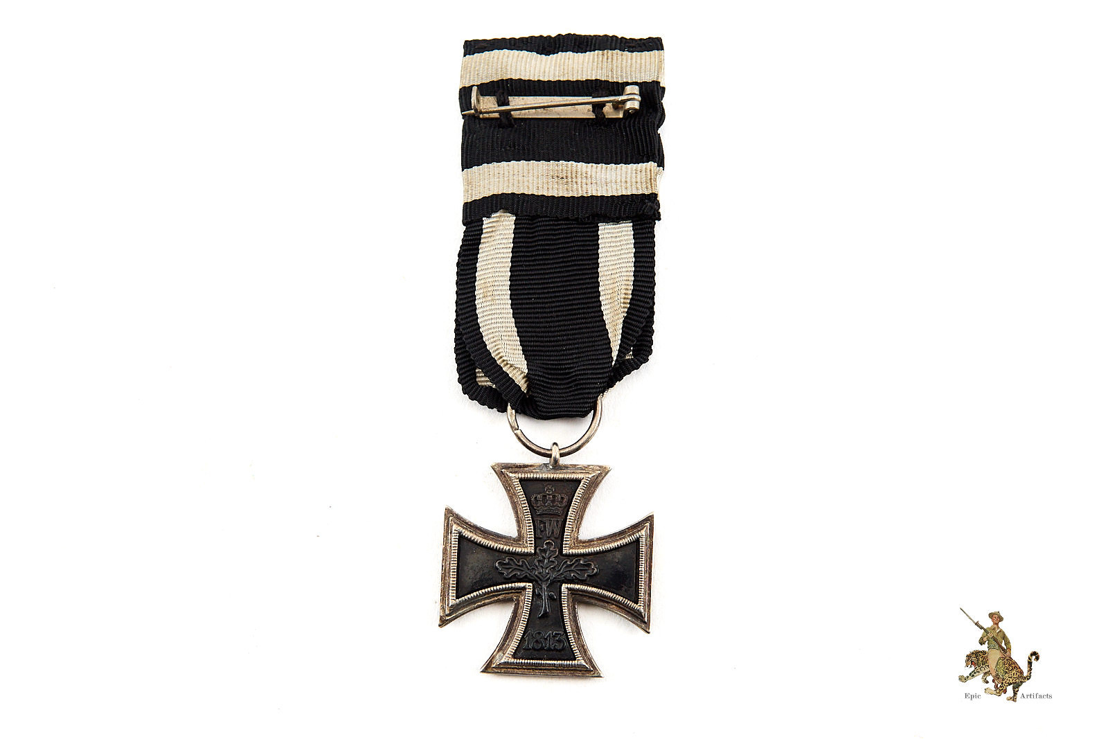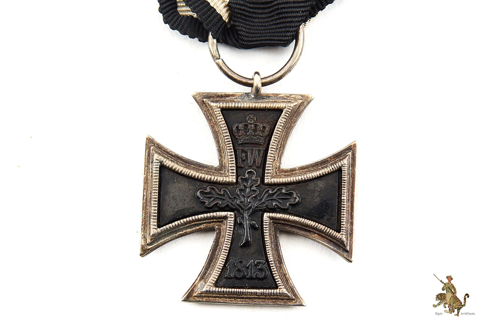 Historical Description: There is no more iconic German military award than the Iron Cross. The long history of this order began during the Napoleonic Wars. King Friedrich Wilhelm III of Prussia instituted the “Eisernes Kreuz” (Iron Cross) in March of 1813. The award criteria changed somewhat with time, but generally speaking, Iron Crosses could be awarded for individual acts of bravery, or for leadership achievements on the battlefield. The design was created by a Karl Friedrich Schinkel, his choice of the black cross with silver outline was derived from the heraldic emblem of the Teutonic Knights. There were a number of different type and grades of Iron Cross awards throughout its long history, but the basic details of the most widely awarded grades: The Iron Cross 1st Class and Iron Cross 2nd Class- remained the same. The first-class award was a breast badge, with fittings on the reverse to allow it to be worn on the uniform. These fittings varied widely over time and from maker to maker, and could be a simple in and catch, a screw post and retaining disc, or more elaborate setups. The second-class award was suspended from a ribbon, originally in the Prussian colors of black and white, later in the Reich colors of black, red and white. On the original versions of these crosses, in 1813, the front of the iron core of each grade was bare, and only the second-class award had ornamentation: a crown over the initials “FW” representing the King, a sprig of oak leaves, and the date 1813. The core was redesigned in 1870, when the cross was re-instituted during the Franco-Prussian War. The reverse ornamentation on the Iron Cross 2nd Class remained the same, but the front of the core on both grades now bore another crown, a “W” representing Kaiser Wilhelm, and the date 1870. This pattern repeated again when the cross was reinstituted for WWI- everything stayed the same, only the date 1870 was replaced with 1914. The final reinstitution of the cross came in 1939. For this version, the front of the core for both grades bore a swastika and the date 1939. The oak leaves, crown and royal initials were removed from the reverse, with only the date 1813 remaining as a reminder of the legacy of this award. In WWII, hundreds of thousands of Iron Cross First Class awards were bestowed, and four and a half million Iron Cross Second Class awards. Iron Crosses were made by a large number of authorized manufacturers Some variants of these awards were mass produced in huge numbers. Others were made in very limited quantities.
