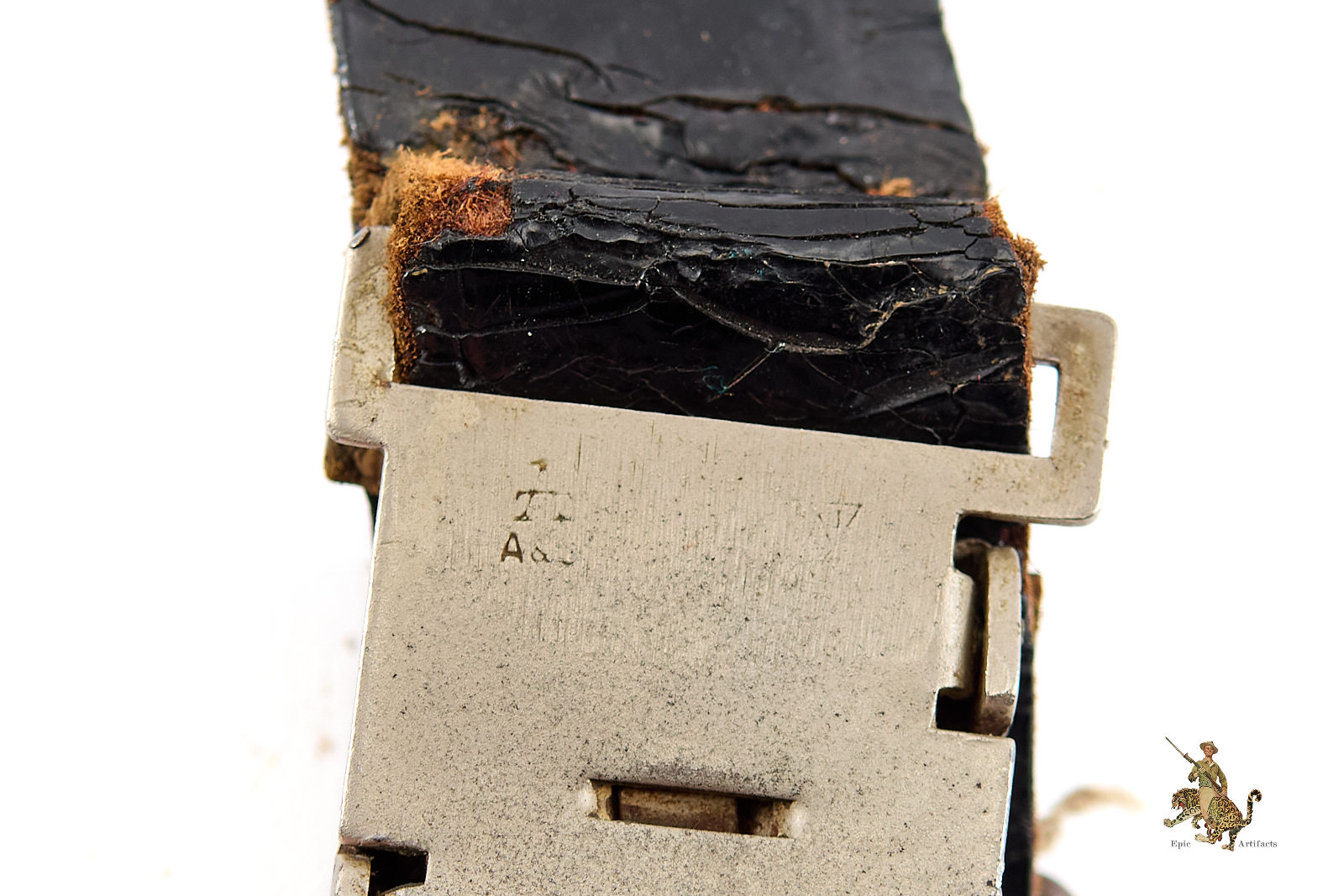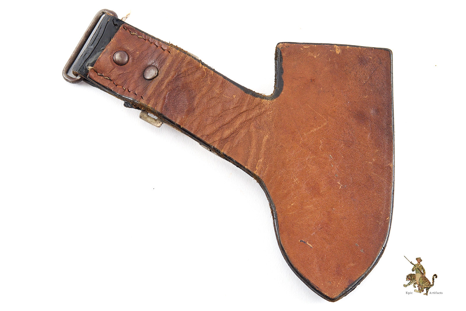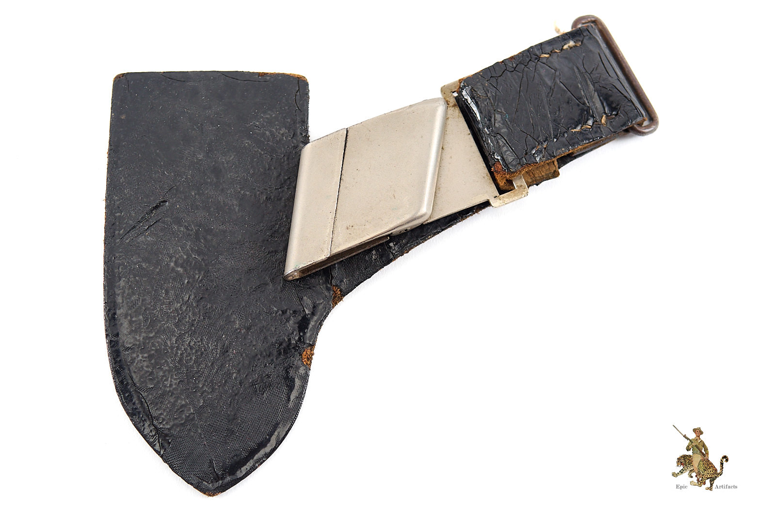 Product Description: A well-preserved Original RAD EM Hewer Hanger, dating to 1938, finely crafted in leather and maker-marked by Assmann & Söhne, with the “A&S” stamp clearly visible on the metal clip. The piece remains in solid condition, exhibiting honest period wear consistent with age and service use. A scarce and desirable example of early Reichsarbeitsdienst (RAD) accoutrements, notable for its quality construction and clear markings. The hanger is missing its upper leather section, as shown, yet retains excellent character and would serve as an ideal complement for a matching RAD hewer.