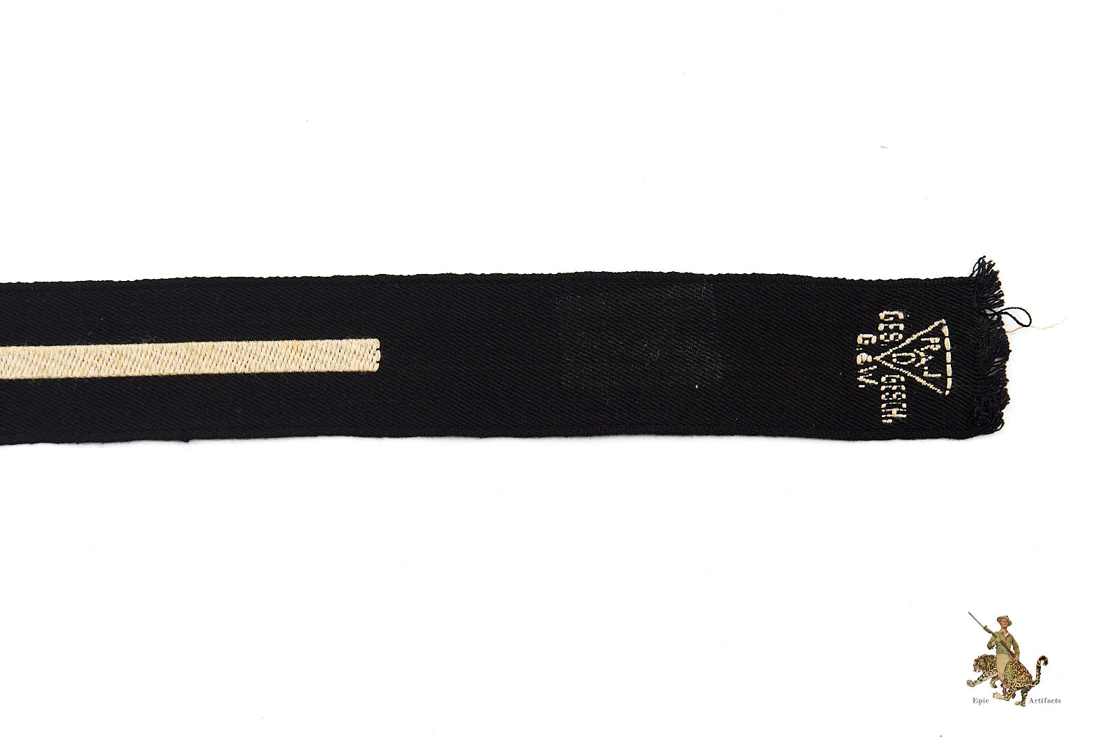 Measuring approximately 14 inches in overall length, this RAD Labor Service District Cuff Title remains in excellent overall condition, displaying only light signs of age and handling. A small area of surface residue from a previous inventory sticker is present and may be removable with careful conservation. A fine leader’s grade example of a Reichsarbeitsdienst insignia, exhibiting clear markings and well-defined BeVo weaving.
