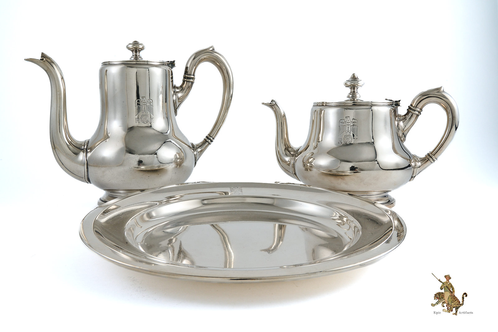 Beyond their functional role, Reich Chancellery-marked objects now serve as historical artifacts that illuminate the material culture of the Nazi government’s administrative core. Surviving examples frequently show signs of use or dispersal at the end of the war, when many items were removed, collected, or repurposed by Allied personnel and civilians. As a result, these dishes and related equipment often carry layered provenance, linking their original institutional context with post-war histories of recovery and collection. Today, they are studied for their craftsmanship, markings, and historical associations, offering insight into how everyday objects were integrated into the broader visual and bureaucratic identity of the regime.