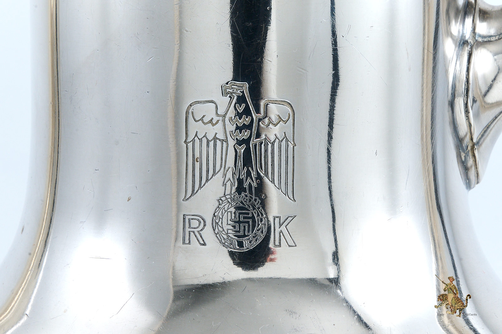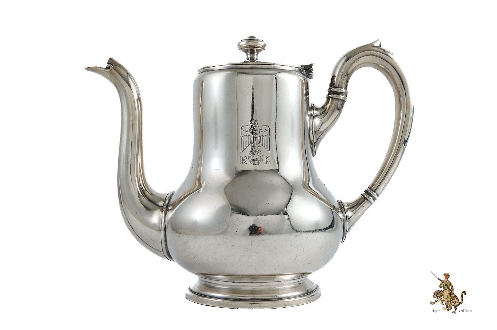 Altogether, the Reich Chancellery RK Wellner Coffee Pot represents a compelling and increasingly scarce artifact of period state service, offering both aesthetic presence and strong collector appeal.