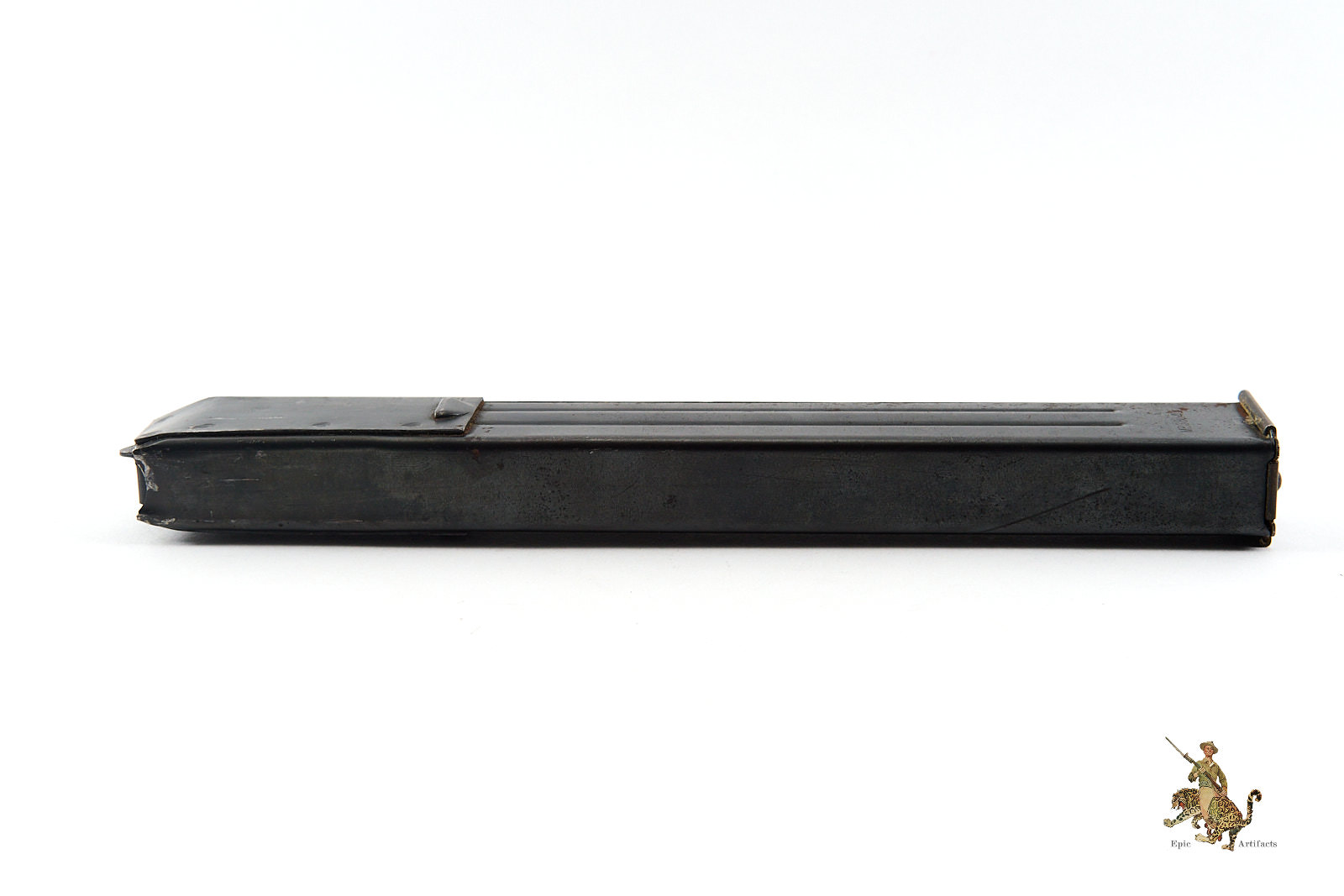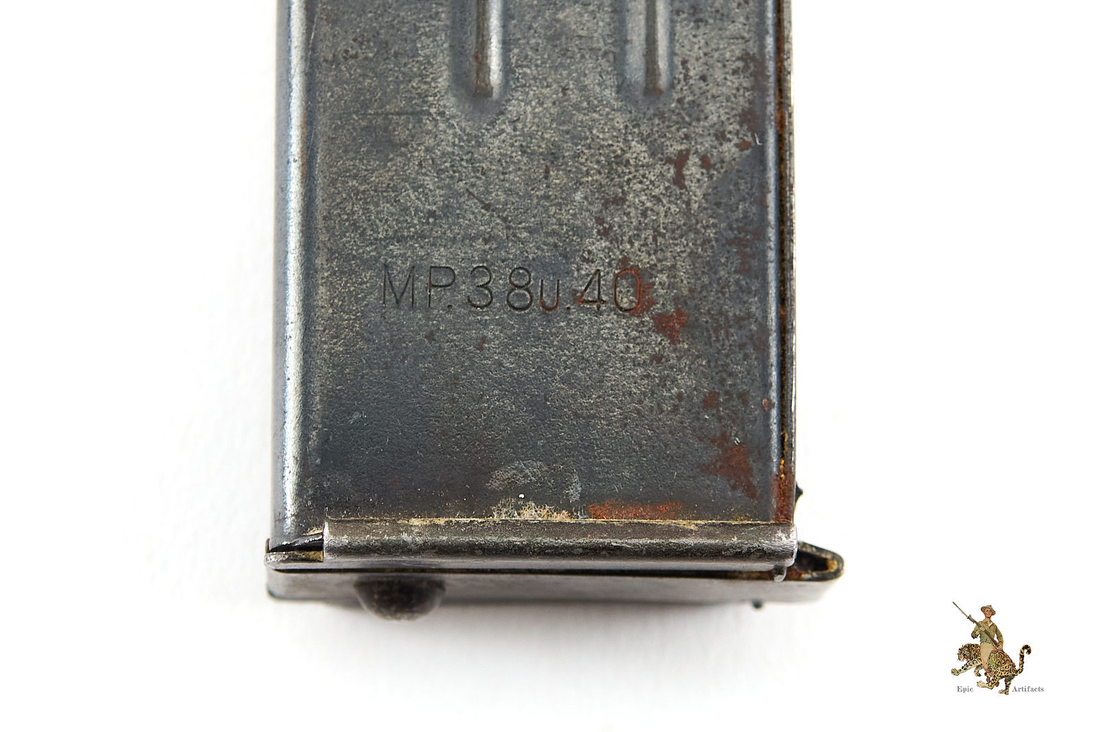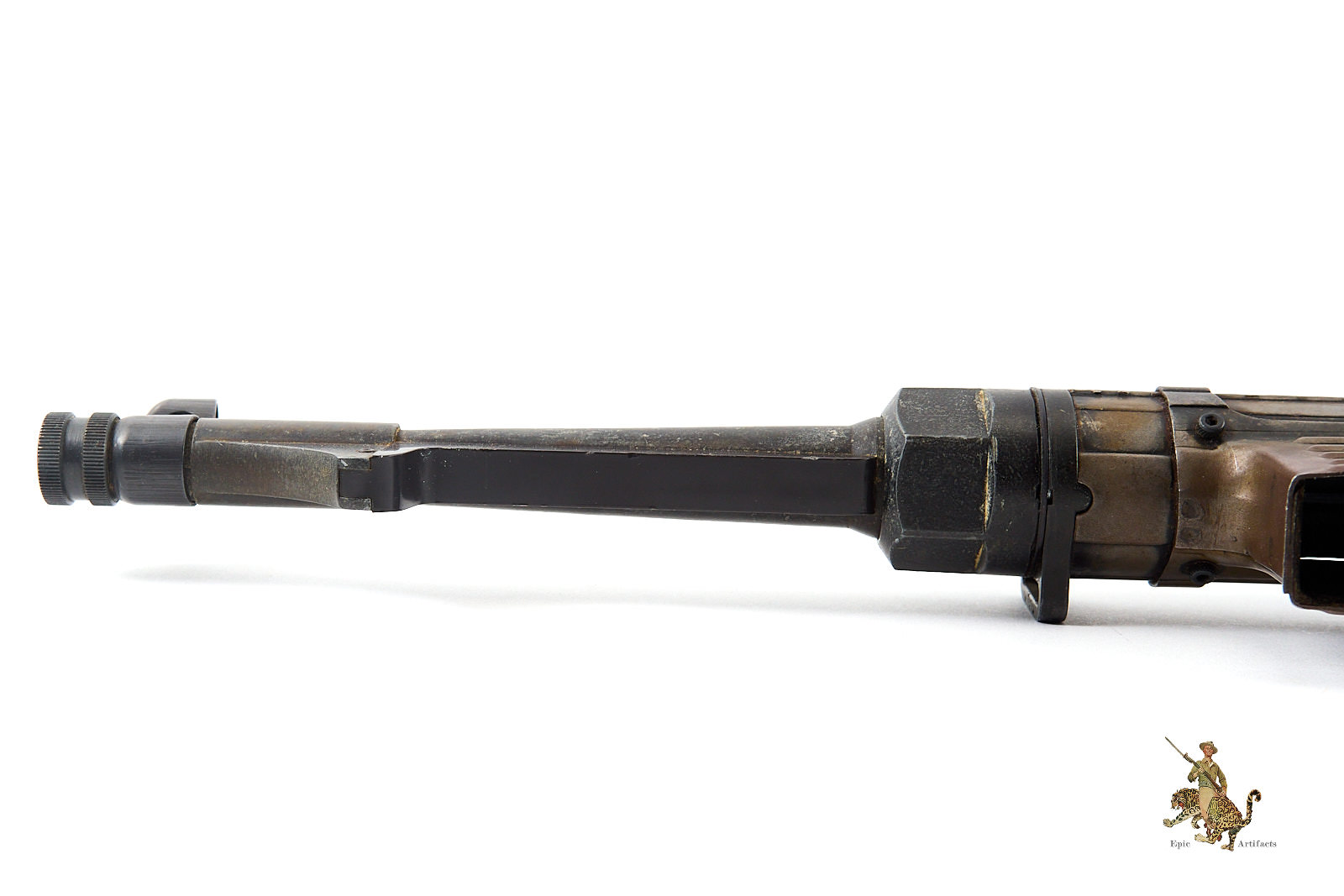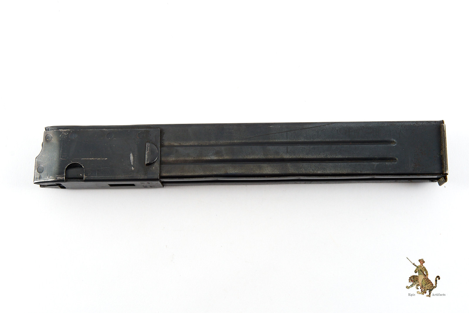 Historical Description: The Maschinenpistole 40 (MP40) is one of the most iconic firearms of the Second World War and a defining weapon of the German Wehrmacht. Developed by Heinrich Vollmer and introduced in 1940 as a refinement of the MP38, it was manufactured primarily by Erma Werke and Steyr-Daimler-Puch. Chambered in 9×19mm Parabellum and firing from an open bolt in fully automatic mode, the MP40 featured extensive use of stamped steel components, allowing for efficient mass production. Its folding metal stock and manageable rate of fire made it especially suited to mechanized infantry, paratroopers, and armored vehicle crews.