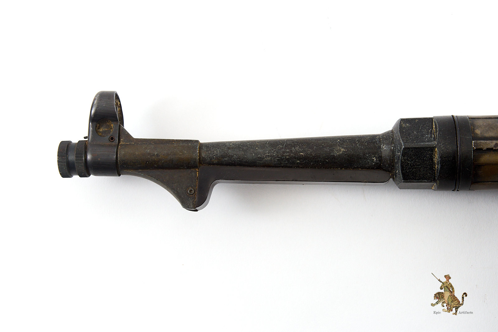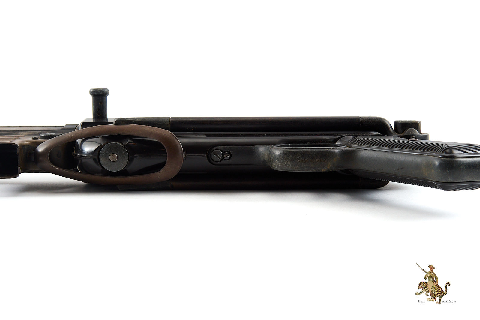 Condition is excellent overall. The metal surfaces retain much of their original finish, with honest wear consistent with handling and use, most evident around the cocking handle, along with light, attractive patination throughout. Mechanically, the piece feels robust and cycles correctly, conveying an authenticity of operation and presence that closely mirrors the original arm.