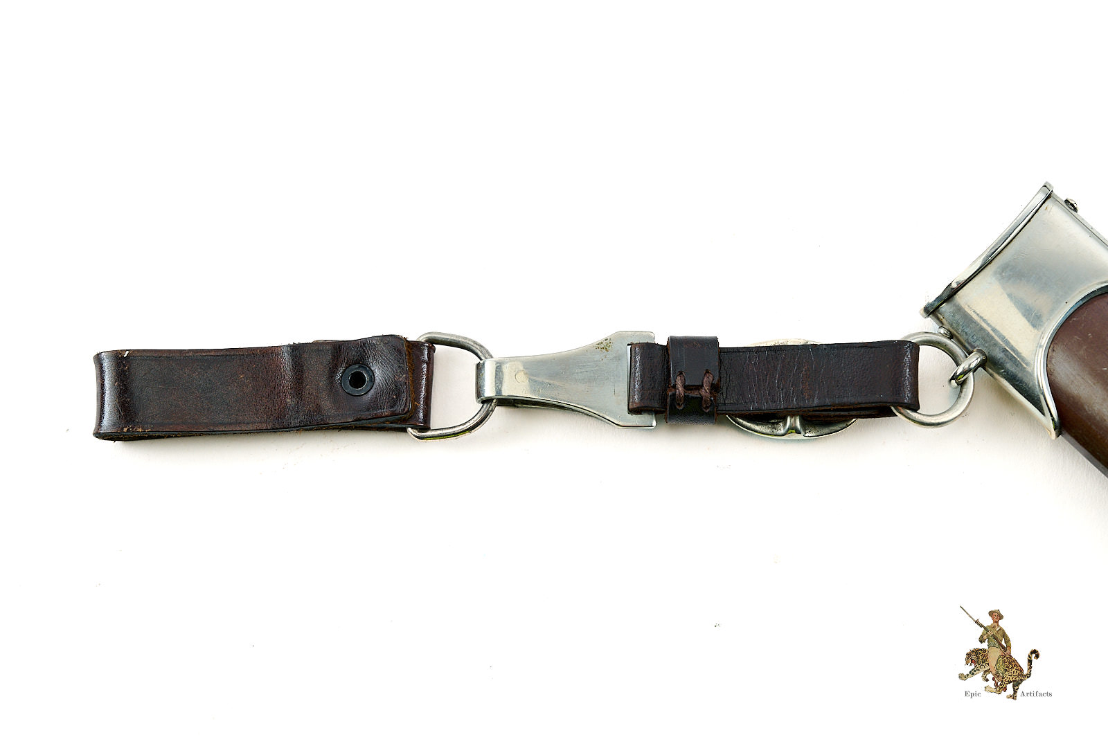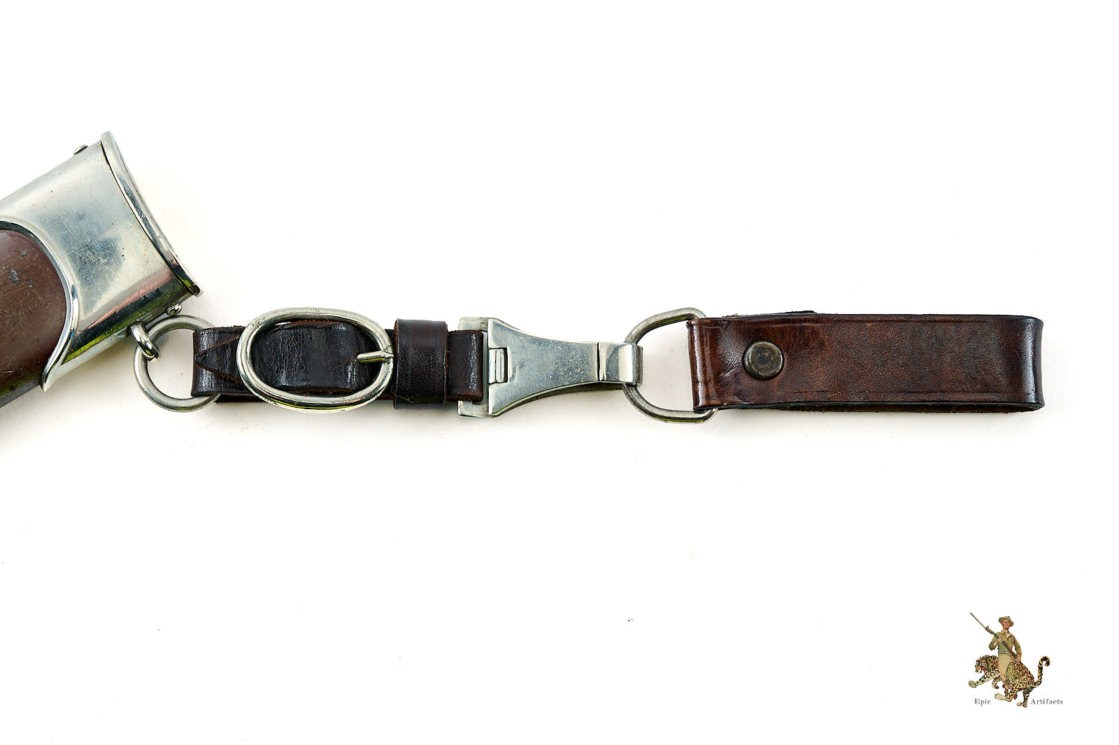 Accompanied by its original leather hanger and belt loop, which remain in excellent condition with only slight surface wear, this ensemble offers a cohesive and authentic presentation.