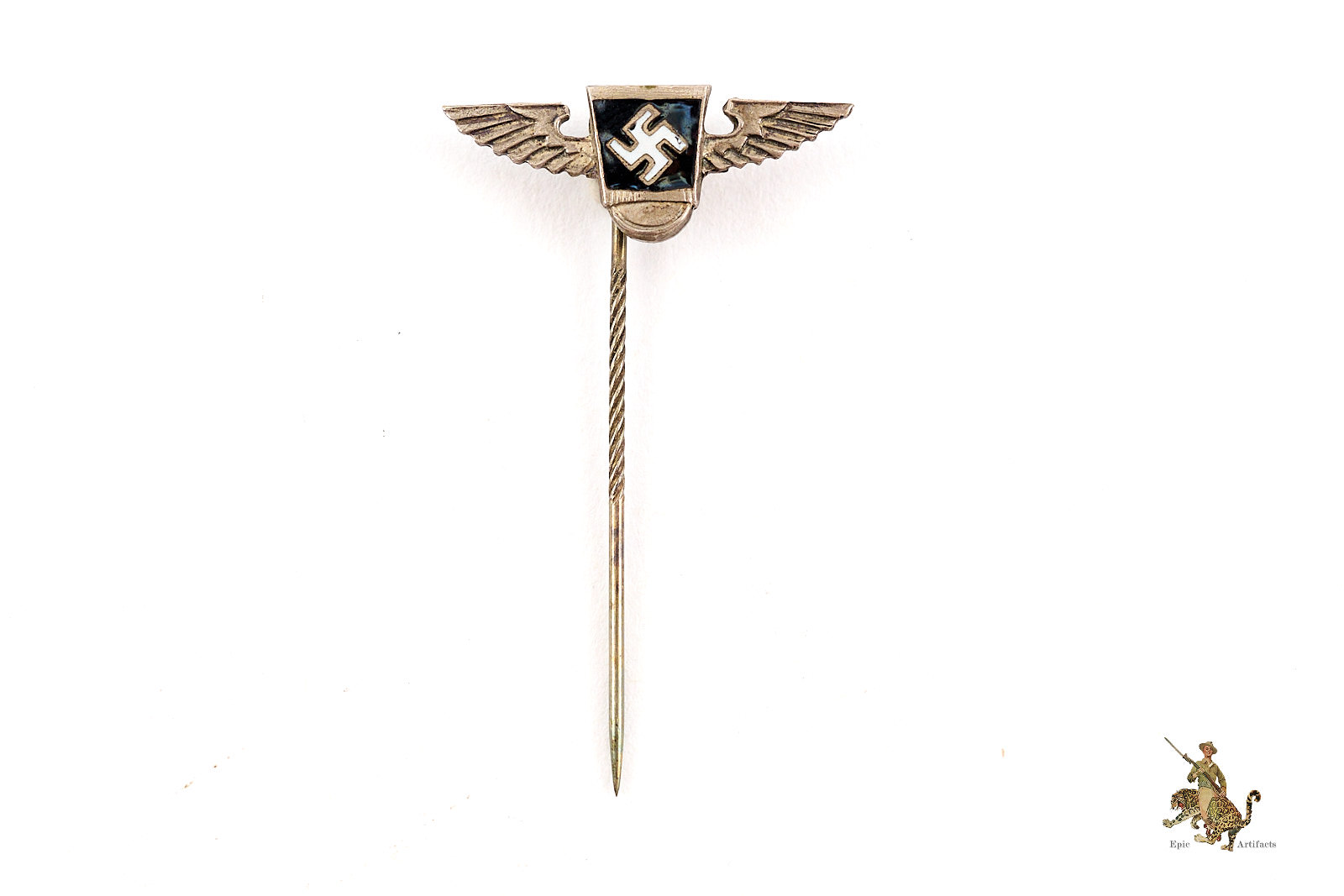 Historical Description:In Germany, during and between the World Wars, stickpins were generally made for wear on civilian clothing, by either men or women. Whereas most civil and military awards intended for uniform wear were in the form of medals or pin-on badges, the simple stickpins were mostly for adorning lapels of suits. A huge variety of these stickpins were produced. There were pins that anyone could buy, that were patriotic or showed support for some specific cause. There were also various membership pins for military, paramilitary, civil and political organizations. Military and civil awards were also produced in stickpin versions. These took the form of miniature versions of the awards, and could either show one individual award, or all the awards that one individual had received. In many cases, German stickpins were made with the same standard of quality as the full-size medals and badges.