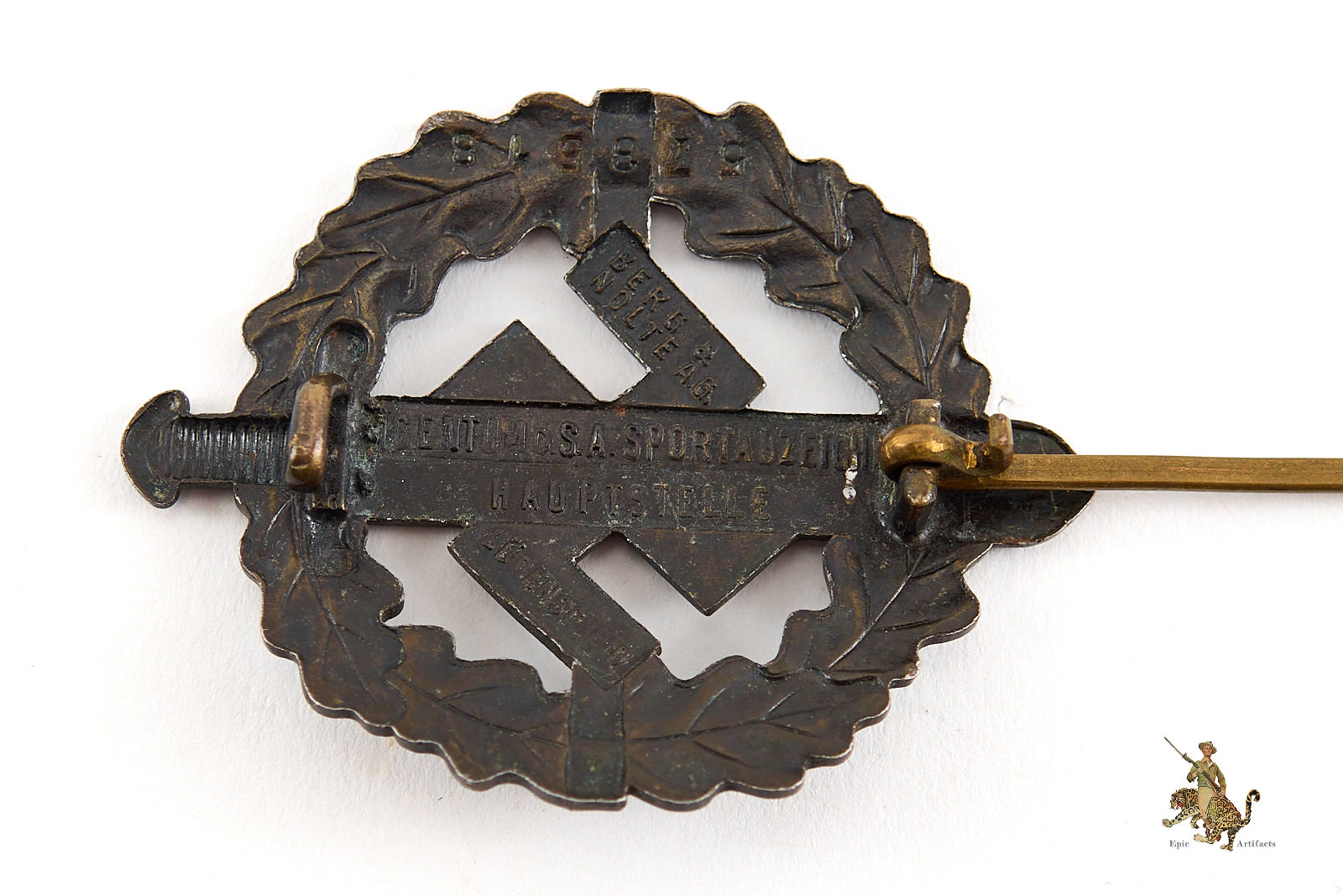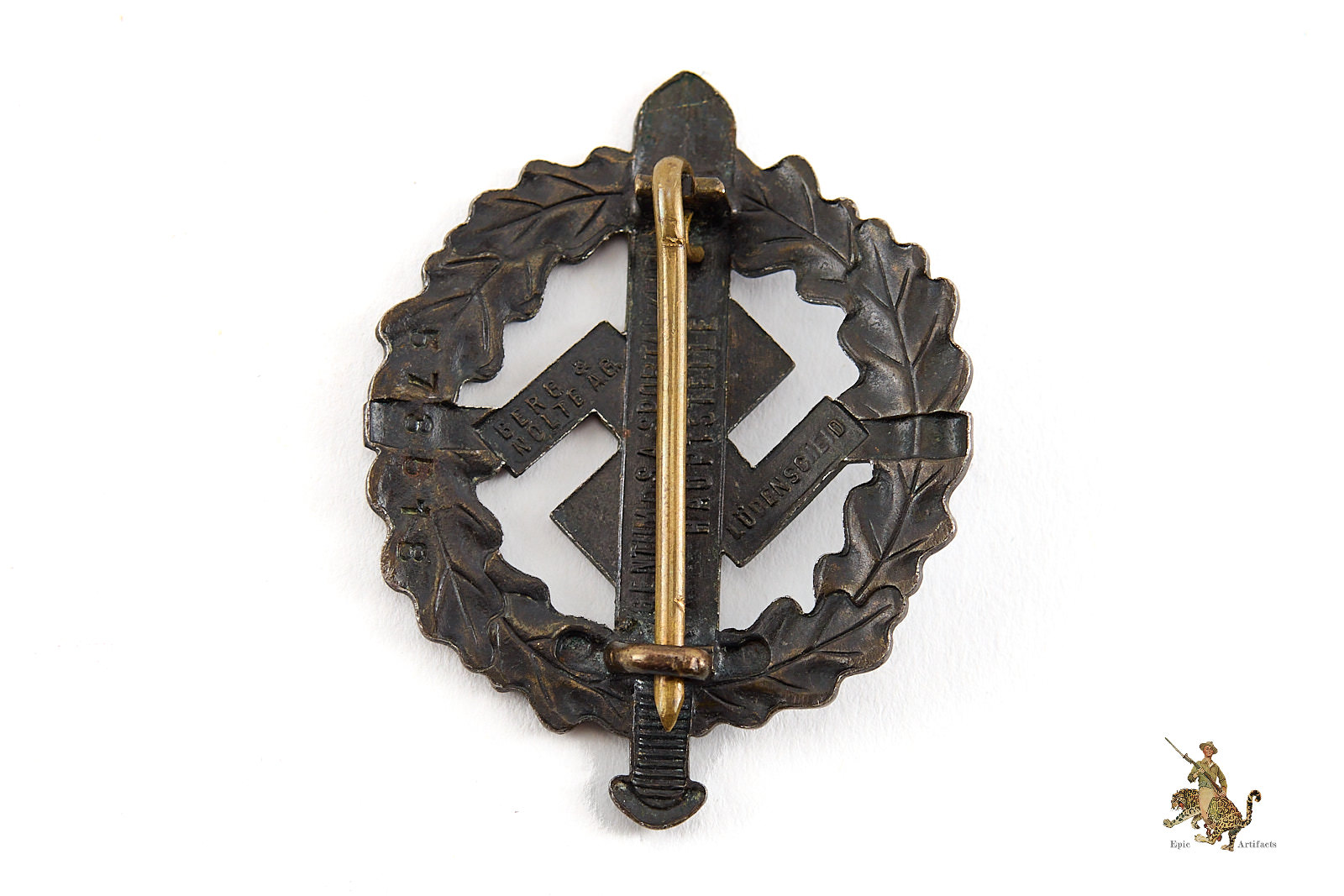 Historical Description: The Sturmabteilung, known by the initials “SA,” were the original paramilitary wing of the Nazi Party. This organization was originally formed in 1921 and played a large role in the Nazi ascendancy and rise to power from the 1920s through 1933. The organization had a system of ranks and was divided into units, in a manner similar to that of the military. As with all of the paramilitary organizations during the Third Reich, the SA wore uniforms and had their own distinctive badges, insignia and regalia. At the time of the Nazi seizure of power in 1933, the SA had two million members. Following the Night of the Long Knives in 1934, and the arrest and eventual murder of SA leader Ernst Rohm, the size and influence of the SA decreased, but it continued to exist until the fall of Nazi Germany in May 1945. During WWII, the SA was involved with pre-military training, with the largest training unit, the SA-Marine, serving as an auxiliary to the German Navy. The SA even attempted to field a combat unit, at first as a Regiment, and eventually, an armored Korps- “Panzerkorps Feldherrnhalle.” The vast size of the SA at its height, and the length of time the SA was operational, created a vast range of different items of uniform, equipment, insignia, paperwork, etc., which is very collectible today.