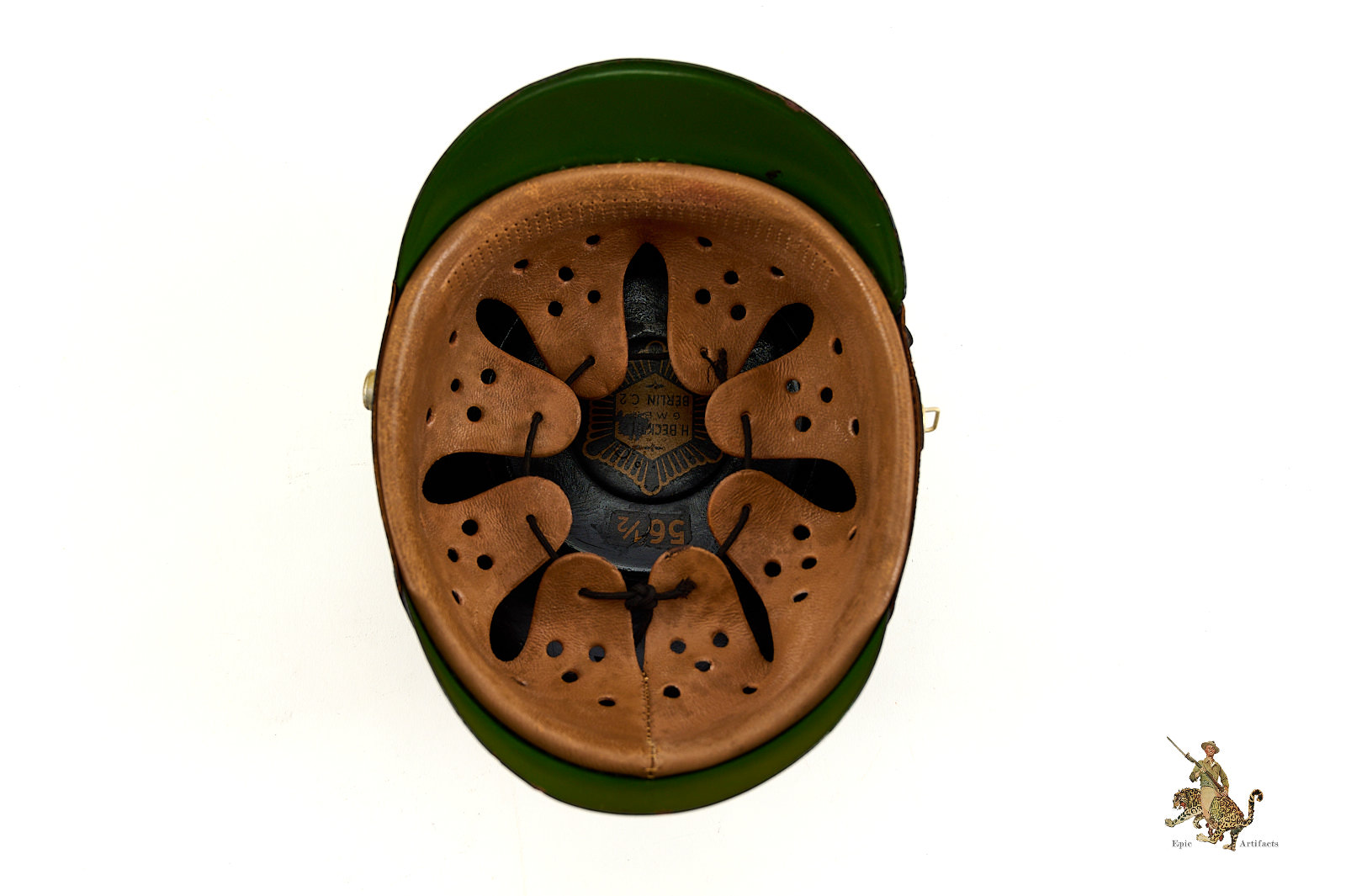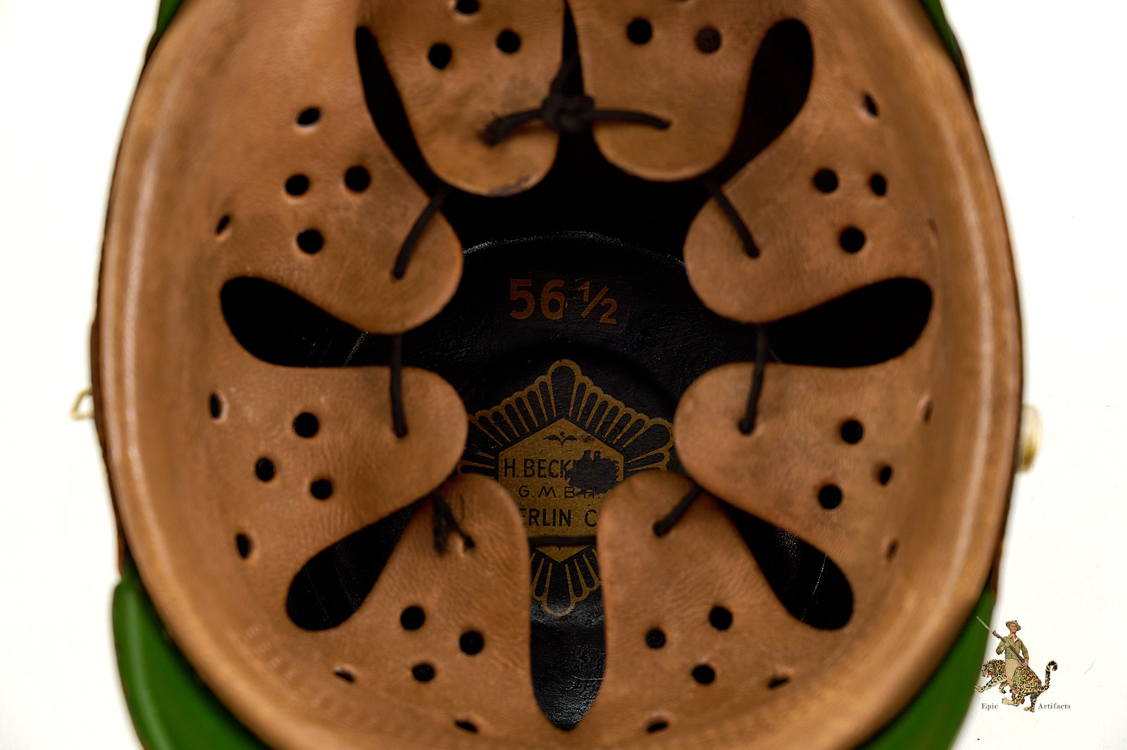 Overall, this Schutzpolizei Enlisted Police Shako – H. Becker example rates in excellent condition, representing a fine specimen of the enlisted ranks headgear issued to the German Schutzpolizei during the period, and a particularly attractive example by maker H. Becker.