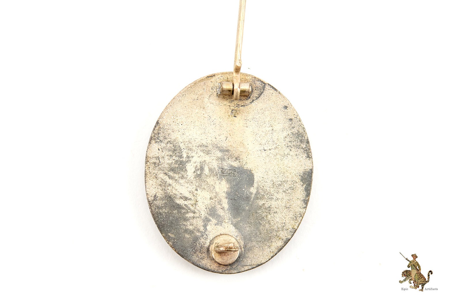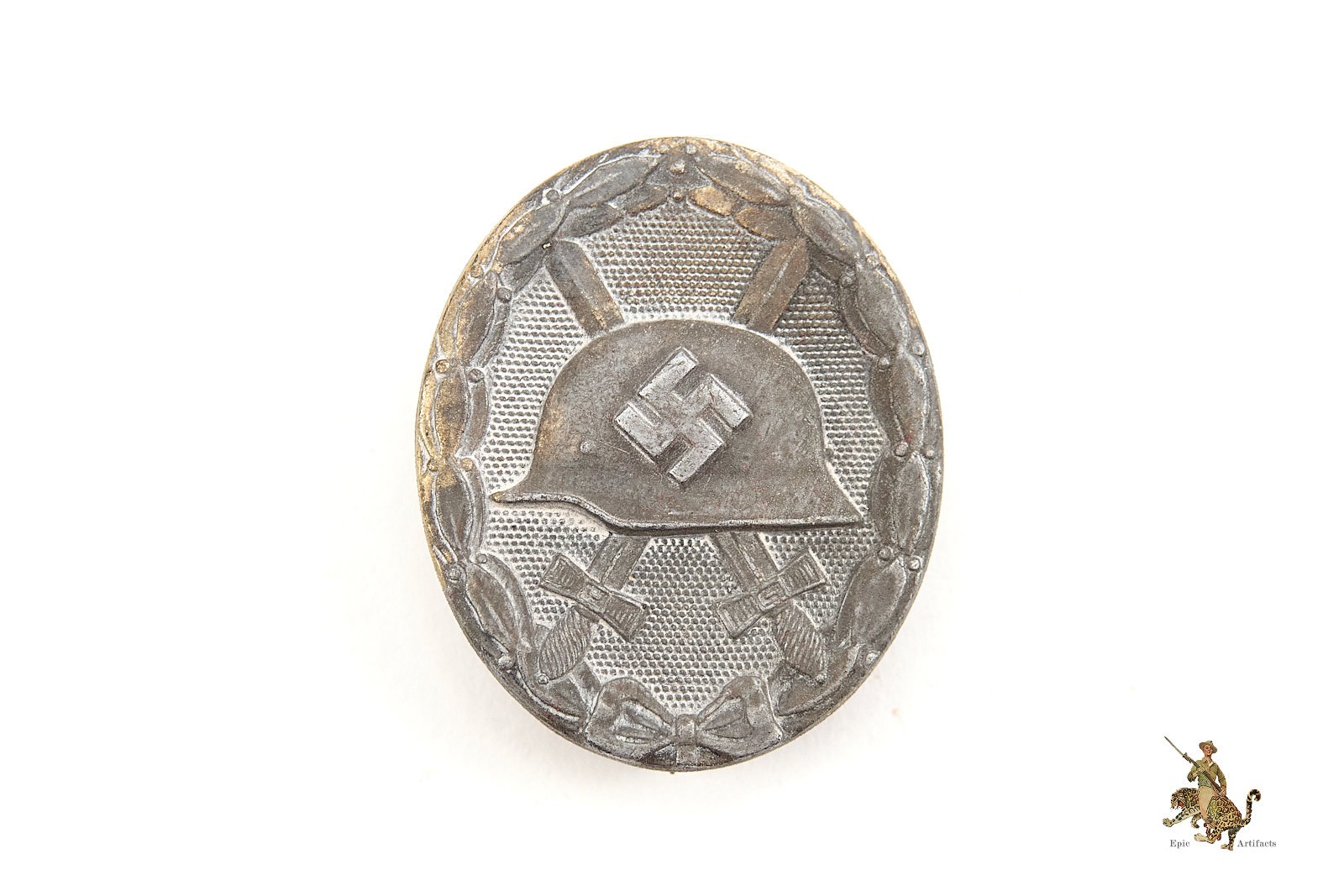 Historical Description: The German Wound Badge was instituted during the First World War to recognize those wounded in the conflict. It was designed using a World War One style Imperial German helmet as the main motif. The helmet was set on top two crossed swords against a pebbled background and surrounded by a laurel leaves wreath.