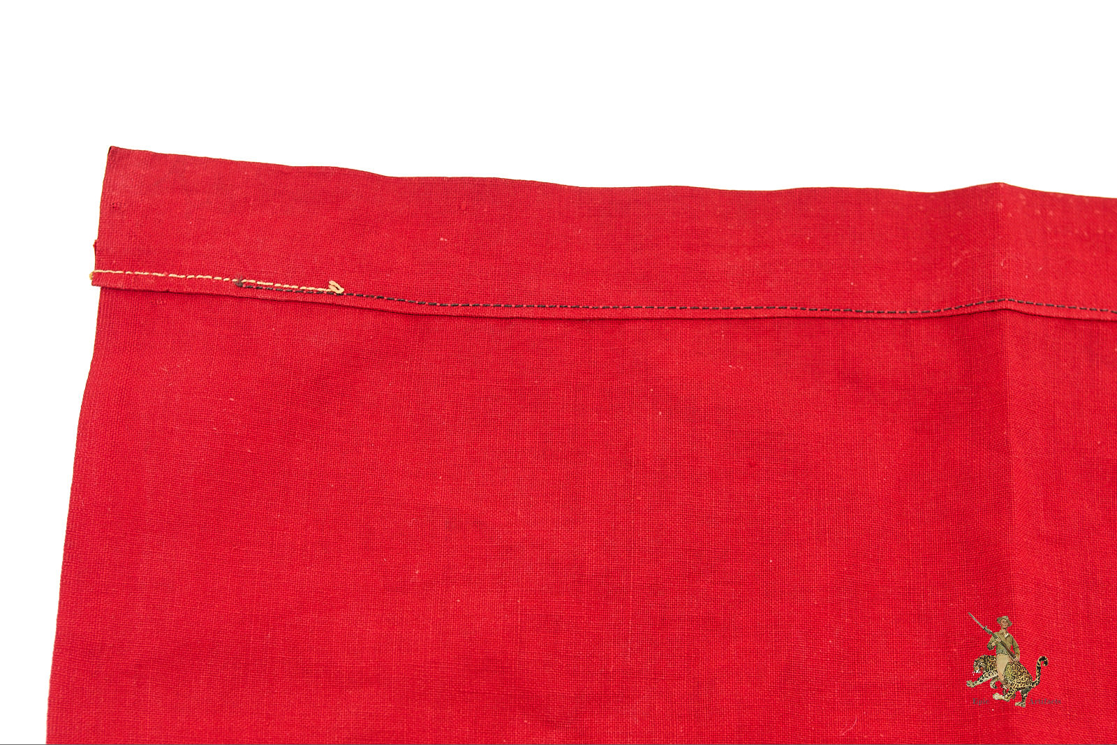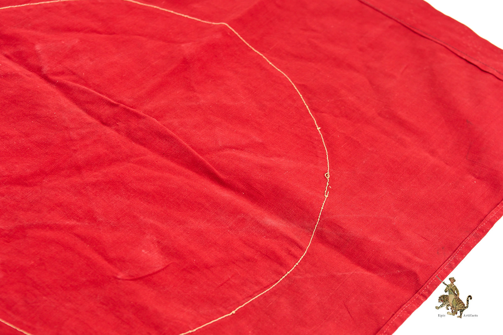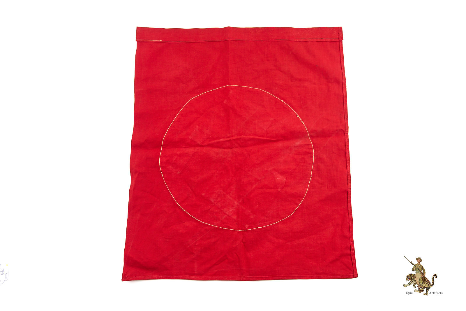 Product Description: This is an all-original WWII Small NSDAP Single Sided Flag 15″x18″, a striking historical piece that has been well-preserved over time. Measuring 15″ by 18″, this banner is a prime example of the type used at Nazi Party gatherings and after 1935, as an official German national flag. Crafted from a thin red fabric, the banner retains its vibrant original color, with only minimal fading and discoloration. The centerpiece features a machine-stitched white roundel with a two piece black cloth making the swastika on one side. The white fabric has developed natural age toning, adding to its authenticity.  This piece has seen use and exhibits moderate staining and soiling consistent with its age. The quality craftsmanship ensures its durability and excellent condition for display. This historically significant WWII NSDAP Podium Banner is a standout addition for collectors of World War II memorabilia. Don’t miss the opportunity to own an authentic artifact from this pivotal era in excellent condition.