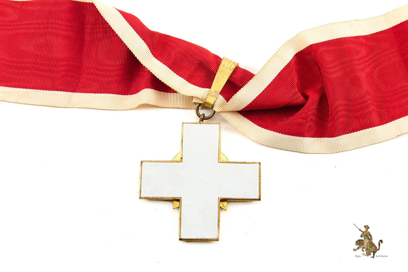 Product Description: A scarce and highly attractive example of the Social Welfare 1st Class Neck Order, executed in tombak, gold fire-gilded and finely enameled. The cross measures approximately 52.7 mm in width by 57.0 mm in height and represents manufacture of very fine quality.