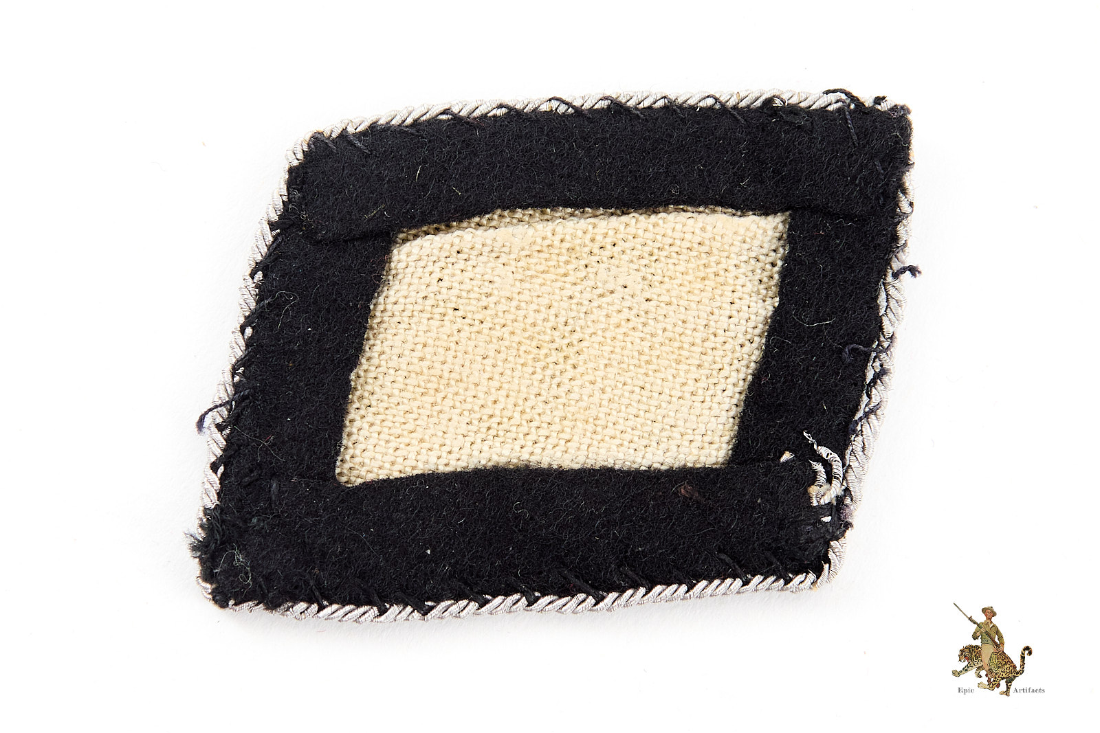 Historical Description: Regulations for the SS Collar Tab went through quite an evolution in just a short 16-year period. The first SS Collar Tabs were introduced in 1929 by Heinrich Himmler as part of the newly introduced SS uniform code. Initially, tabs were worn by both lower rank SS men and their senior leaders. Lower ranks would wear a rank tab as well as a numbered unit identification tab, with senior leaders wearing their rank tabs on both collars. In 1933 the well-known “SS” runic tab was adopted by Hitler’s personal bodyguard detachment, the “Leibstandarte” or “LAH”. The LAH used this runic tab in lieu of the numerical unit identification tab to identify them as members of the elite unit protecting the “Führer”. In 1934 the runic “SS” tabs were again adopted for use by the early “SS-VT” units. This adoption eventually led to the widespread use of SS runic tabs by German Divisions; the later non-German volunteer units would not be permitted to wear the runes, and bore their own unit designed patch instead. SS Collar tabs can be found in an extraordinary variety of numbers, designs, and pipings depending on unit and rank, from hand-embroidered tabs worn by officers to mass produced embroidered and machine woven types that were used on combat uniforms.