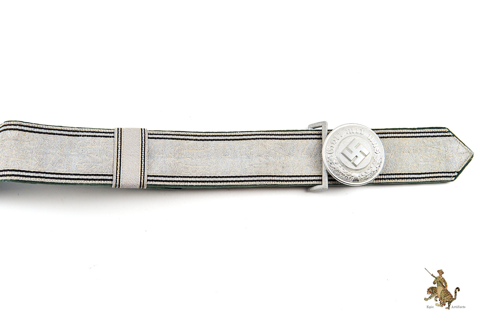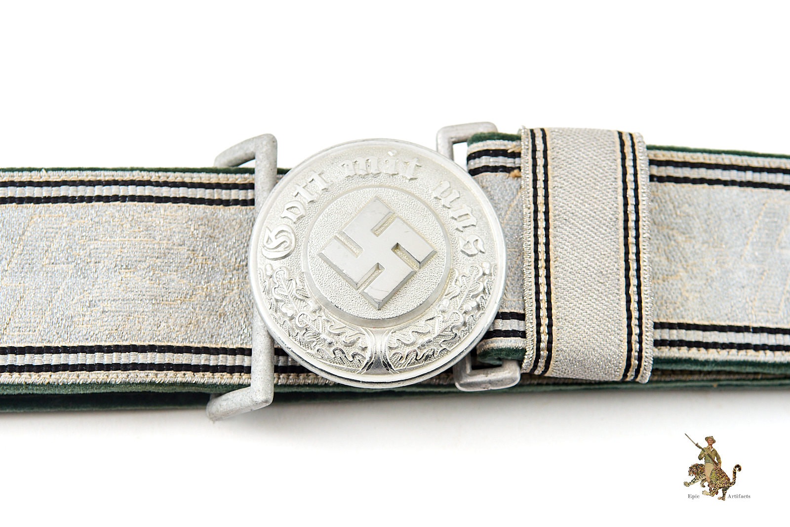 The accompanying buckle is preserved in near-mint condition, sharply struck and marked RZM M1/22, identifying the maker. Surface detail remains crisp, with clean finishes and no evidence of repair or post-war alteration. This SS Brocade Belt & Buckle is absolutely guaranteed authentic and represents a highly attractive, original example combining desirable markings, strong eye appeal, and exceptional preservation. Overall this set rates as excellent ++ / near mint.