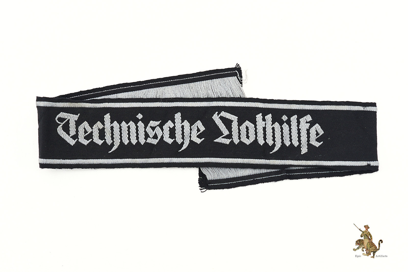 Historical Description: The Technische Nothilfe (TeNo) was a paramilitary technical organization founded in 1919, originally as a civilian emergency response unit. During the Third Reich, it was absorbed into the Reich Ministry of the Interior, taking on more military and wartime infrastructure roles. TeNo personnel were responsible for repairing essential utilities, assisting in civil defense, and providing technical support to both military and industrial operations. The cufftitle was an essential uniform component, signifying membership in the organization. Due to the small size of TeNo compared to other paramilitary units, authentic TeNo cufftitles are considered rare and highly sought after by collectors.