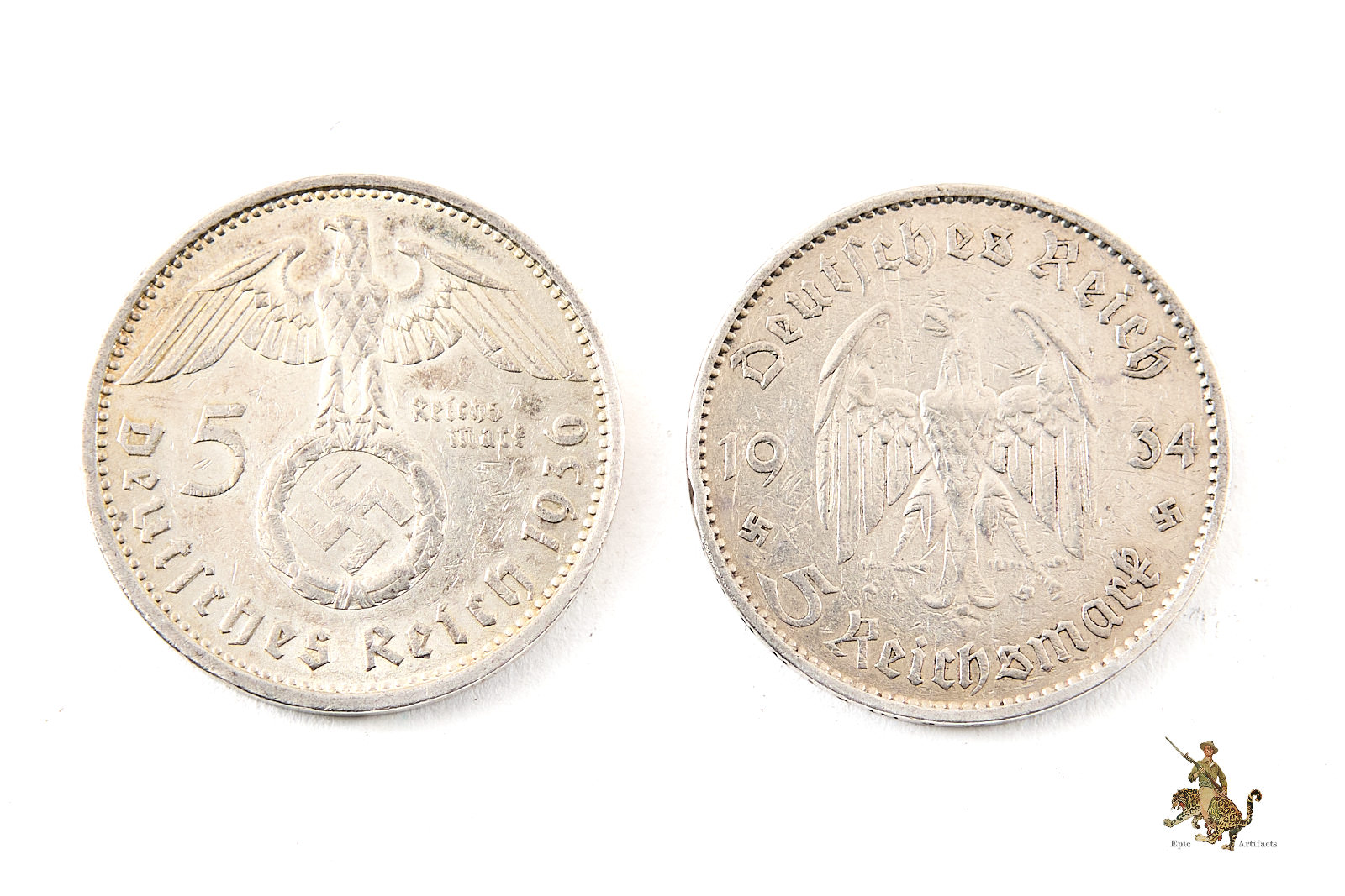 Third Reich 5 Reichsmark Coin Lot of 2 – 90% Silver