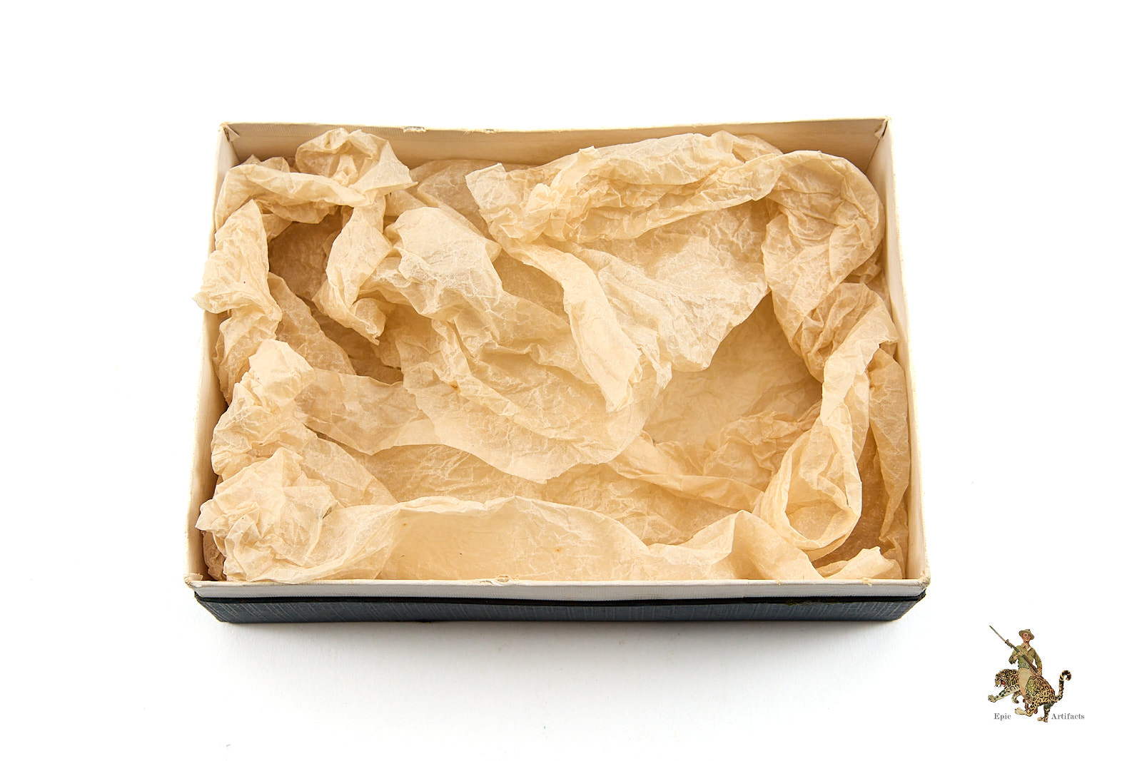The original box remains structurally solid and still contains its original tissue paper. There is a small tear to one corner of the box, but overall presentation remains strong. Altogether, this Type II Veterans Gorget in Box is a well-preserved and visually striking example of period regalia in excellent condition.