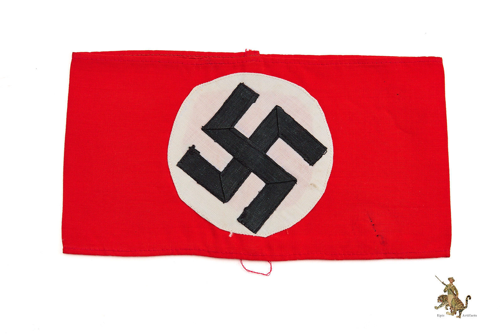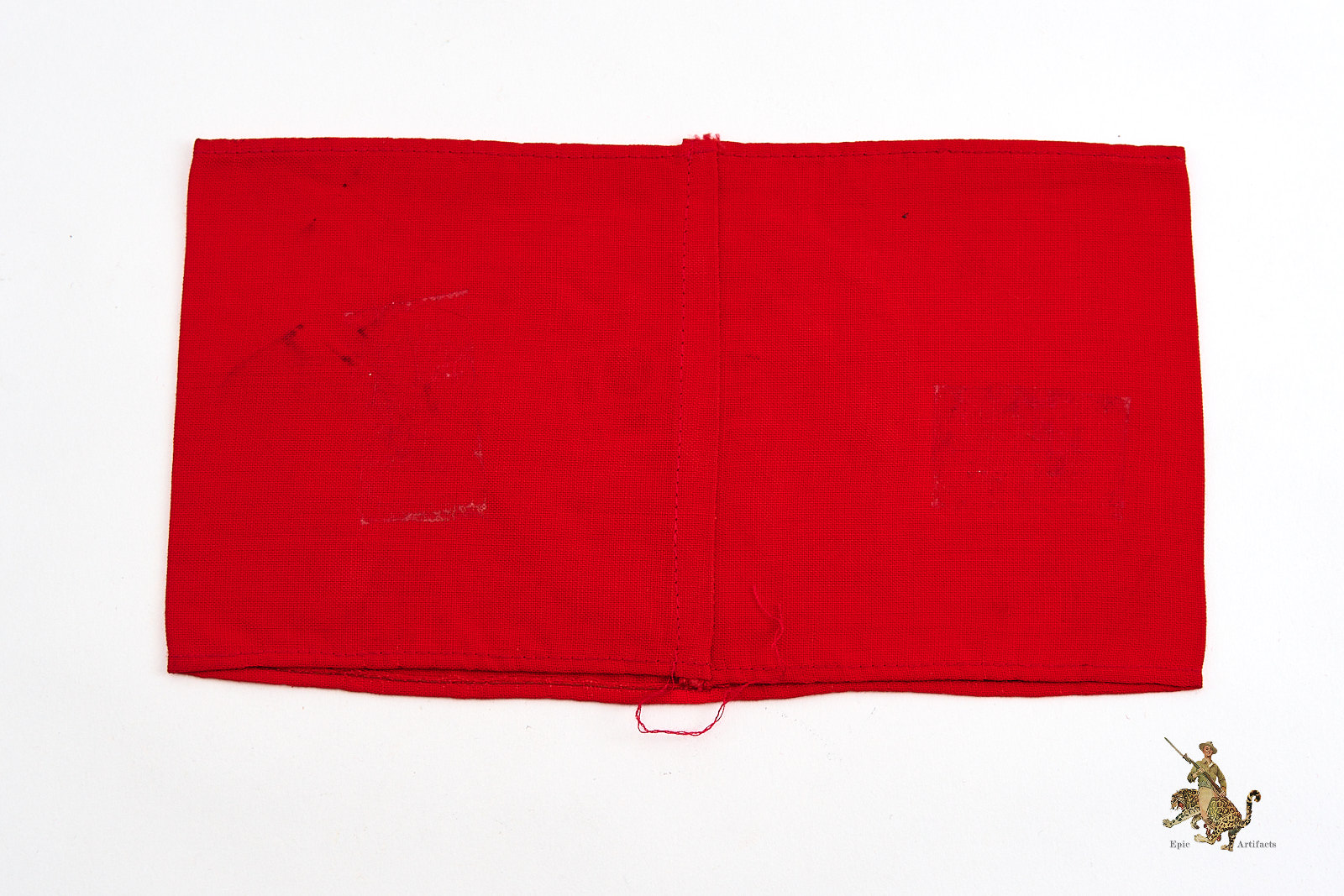 Historical Description: Nearly every military, civil, political, and paramilitary organization in existence during the Third Reich used armbands. Armbands were worn on military and civilian uniforms and also on civilian clothes, from suit jackets to work clothing. They were used to denote membership in organizations, to indicate a specific role or function of the bearer, and as insignia of rank. Many organizations would change the design of their armbands over time, which added to the variety produced. These were manufactured in countless variations, ranging from simple printed bands to elaborately hand-embroidered pieces of the highest quality. Some Nazi armbands were worn by all members of large organizations and were made by the millions. Others were intended for use at a specific time and place and were unique. Many types were made in very limited numbers. Some bore metal insignia or special identifiers that indicated the wearer’s rank, unit affiliation, or nationality. Armbands were sometimes but not always marked with ink stamps by the issuing authorities.