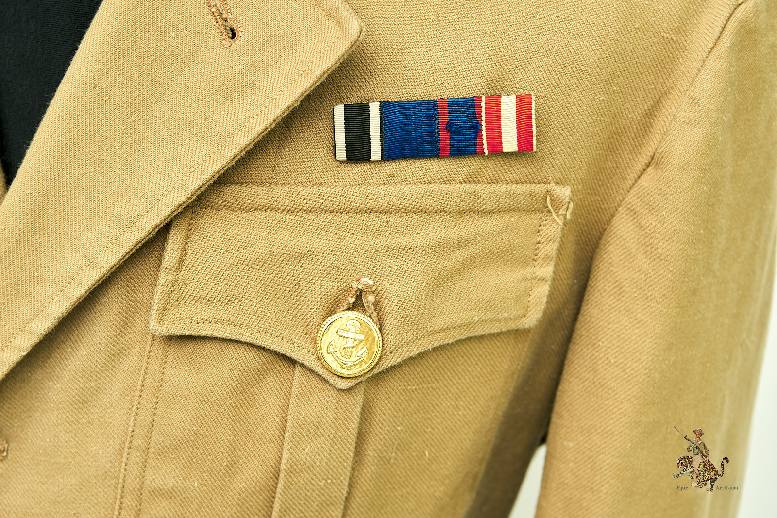 The interior is unmarked, with no visible maker’s labels or size stamps. Overall, the Tropical Kriegsmarine Officer Tunic stands as a fine and well-preserved example of German naval tropical uniform attire, combining condition, character, and collector desirability.