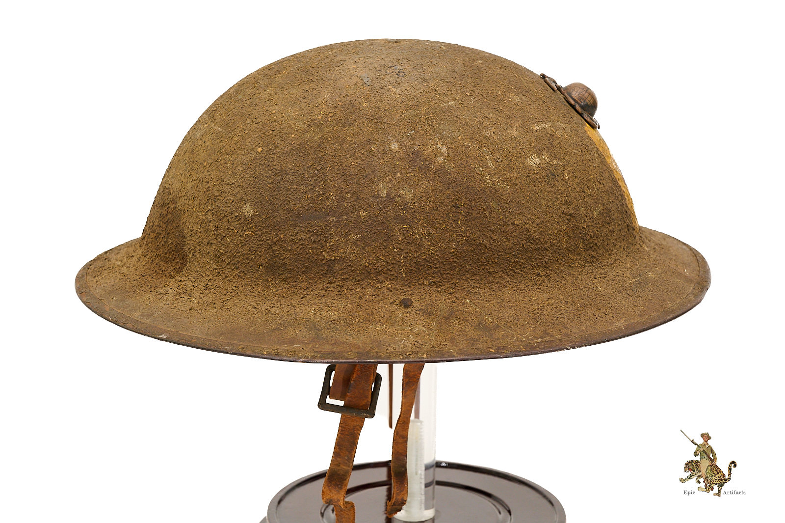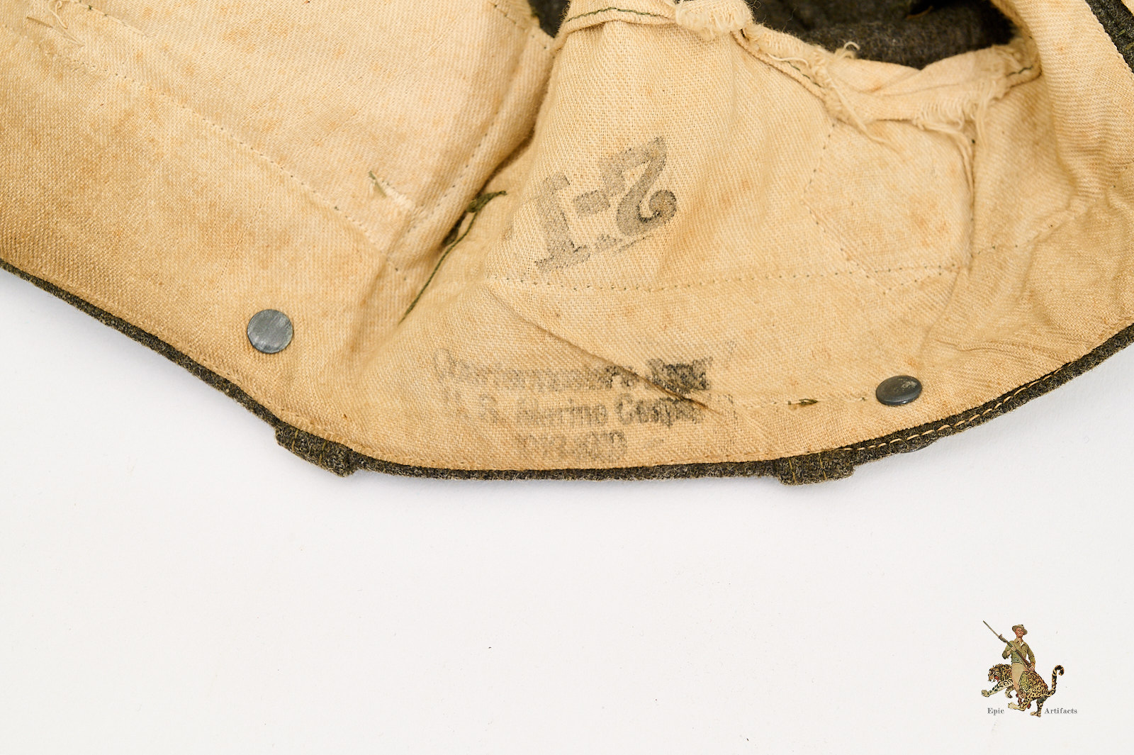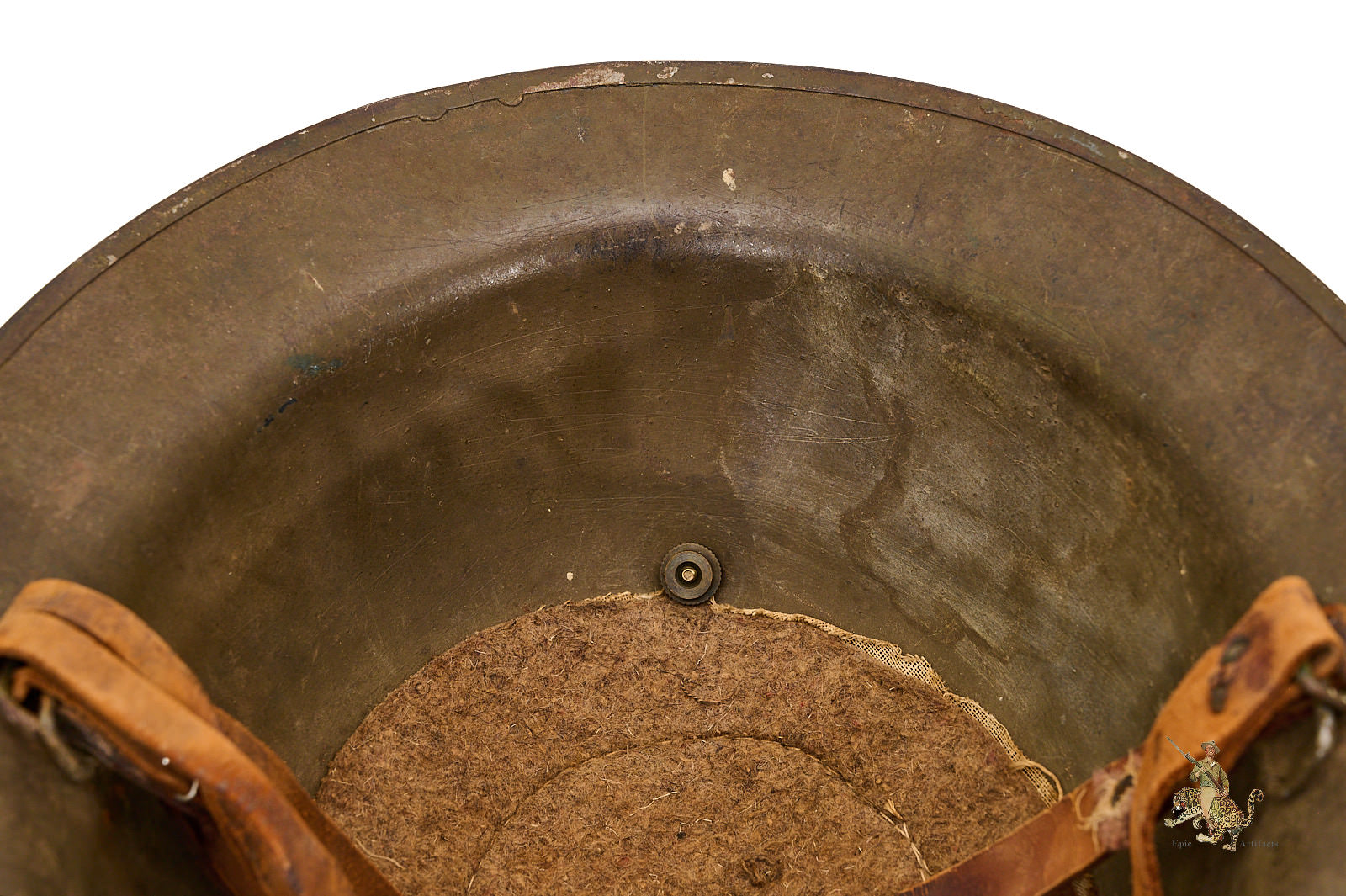 The helmet represents a particularly scarce and visually striking component, featuring a hand-renderedThe US Army’s 2nd Infantry Division (“Indianhead”). Native American-style and of course the correct Eagle, Globe, and Anchor Insignia. The artistry and patination are entirely consistent with period application. The interior is stamped “ZC193,” and retains remnants of the original chinstrap, lending further credence to its untouched, wartime configuration.