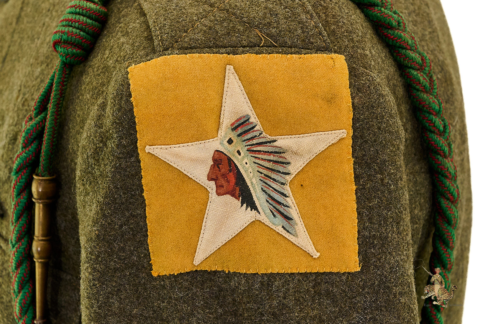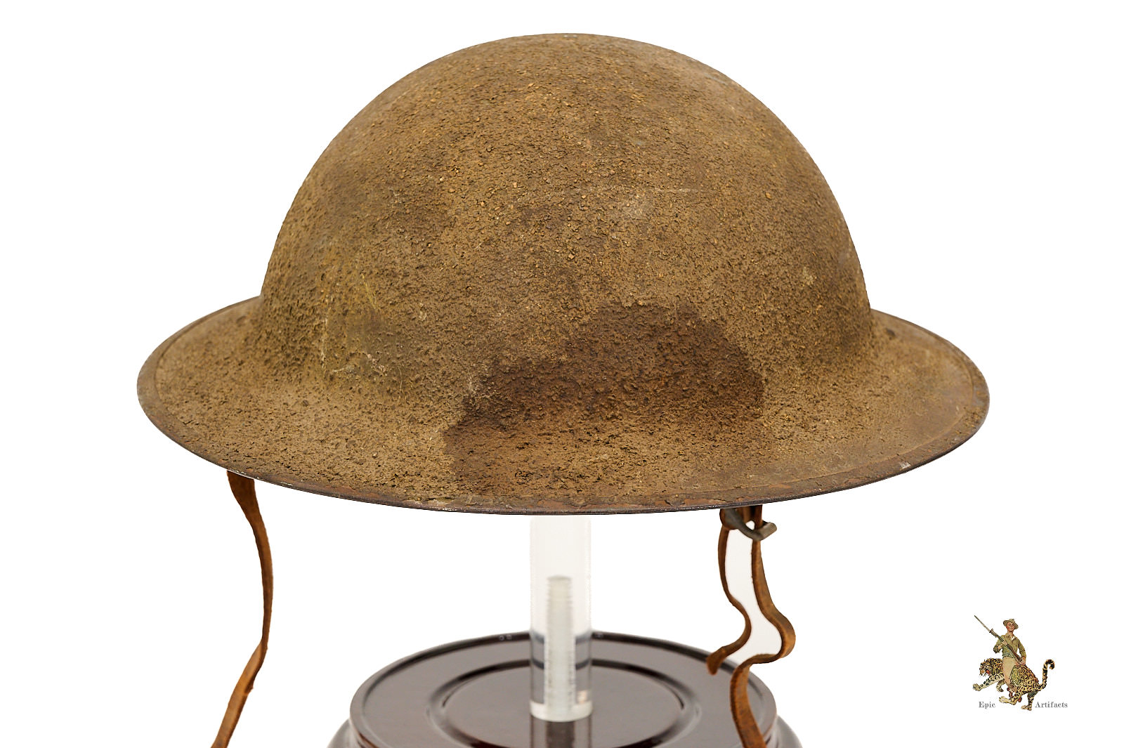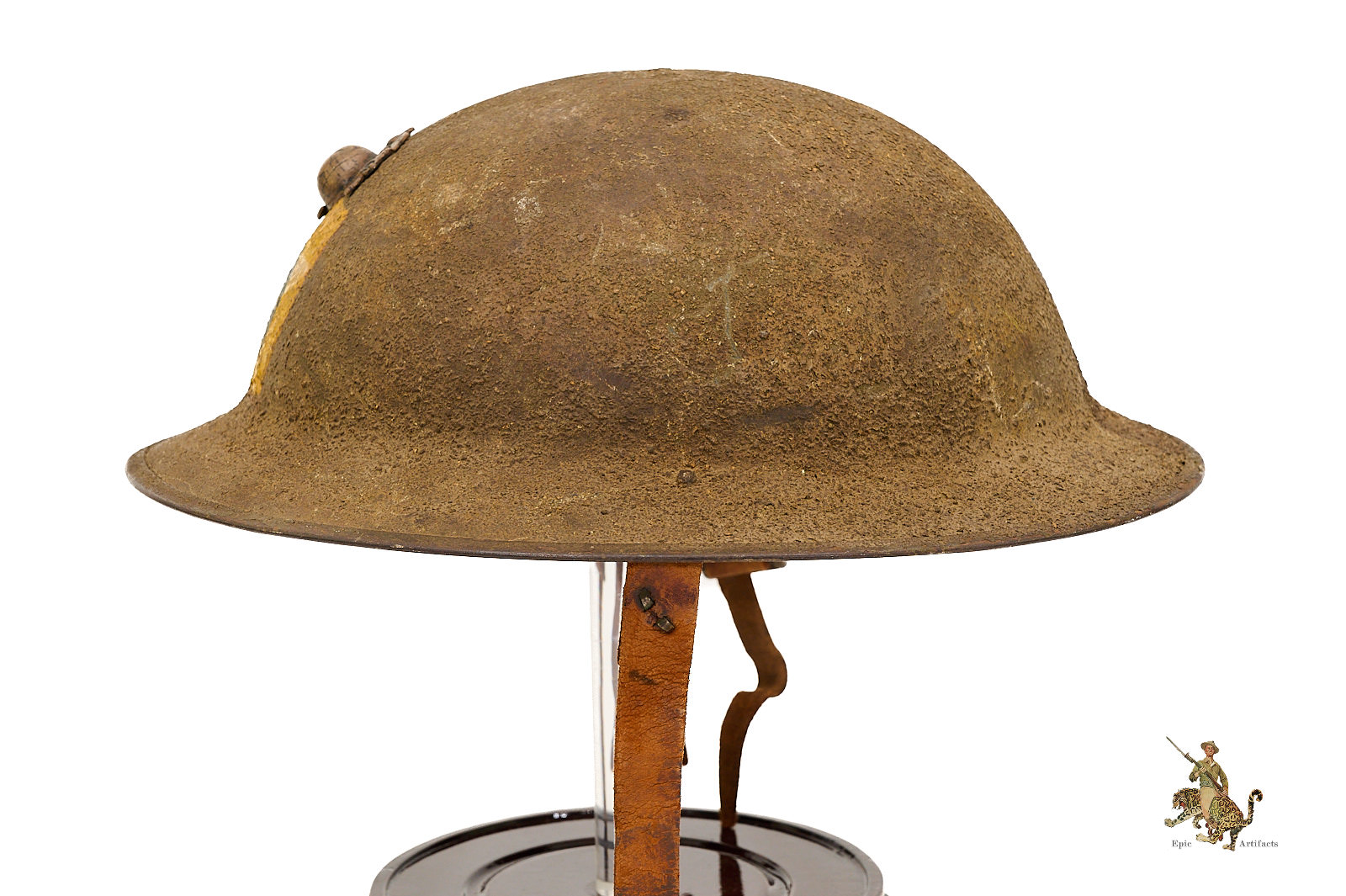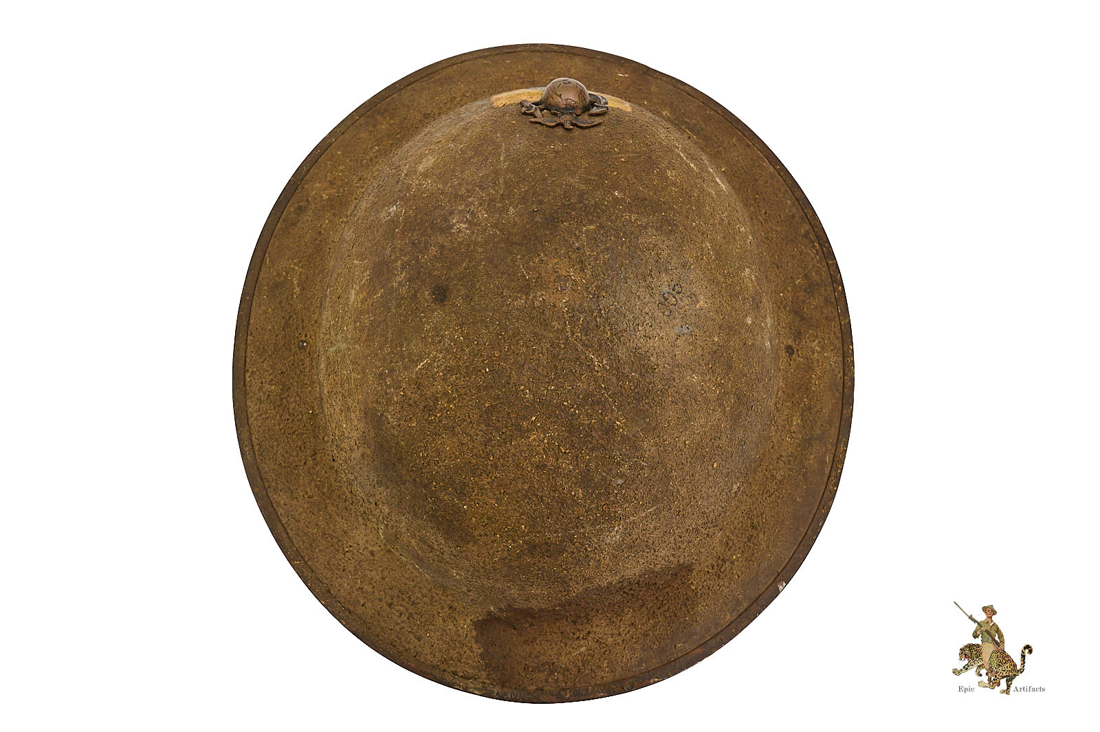 The helmet represents a particularly scarce and visually striking component, featuring a hand-renderedThe US Army’s 2nd Infantry Division (“Indianhead”). Native American-style and of course the correct Eagle, Globe, and Anchor Insignia. The artistry and patination are entirely consistent with period application. The interior is stamped “ZC193,” and retains remnants of the original chinstrap, lending further credence to its untouched, wartime configuration.