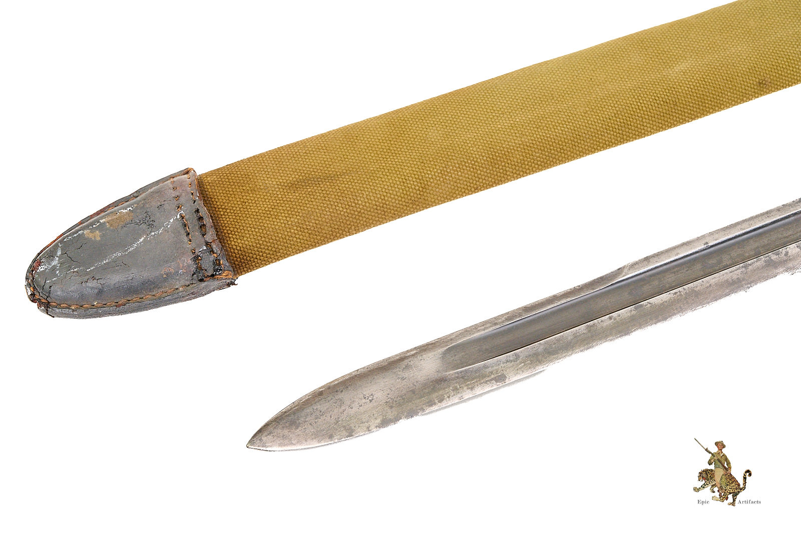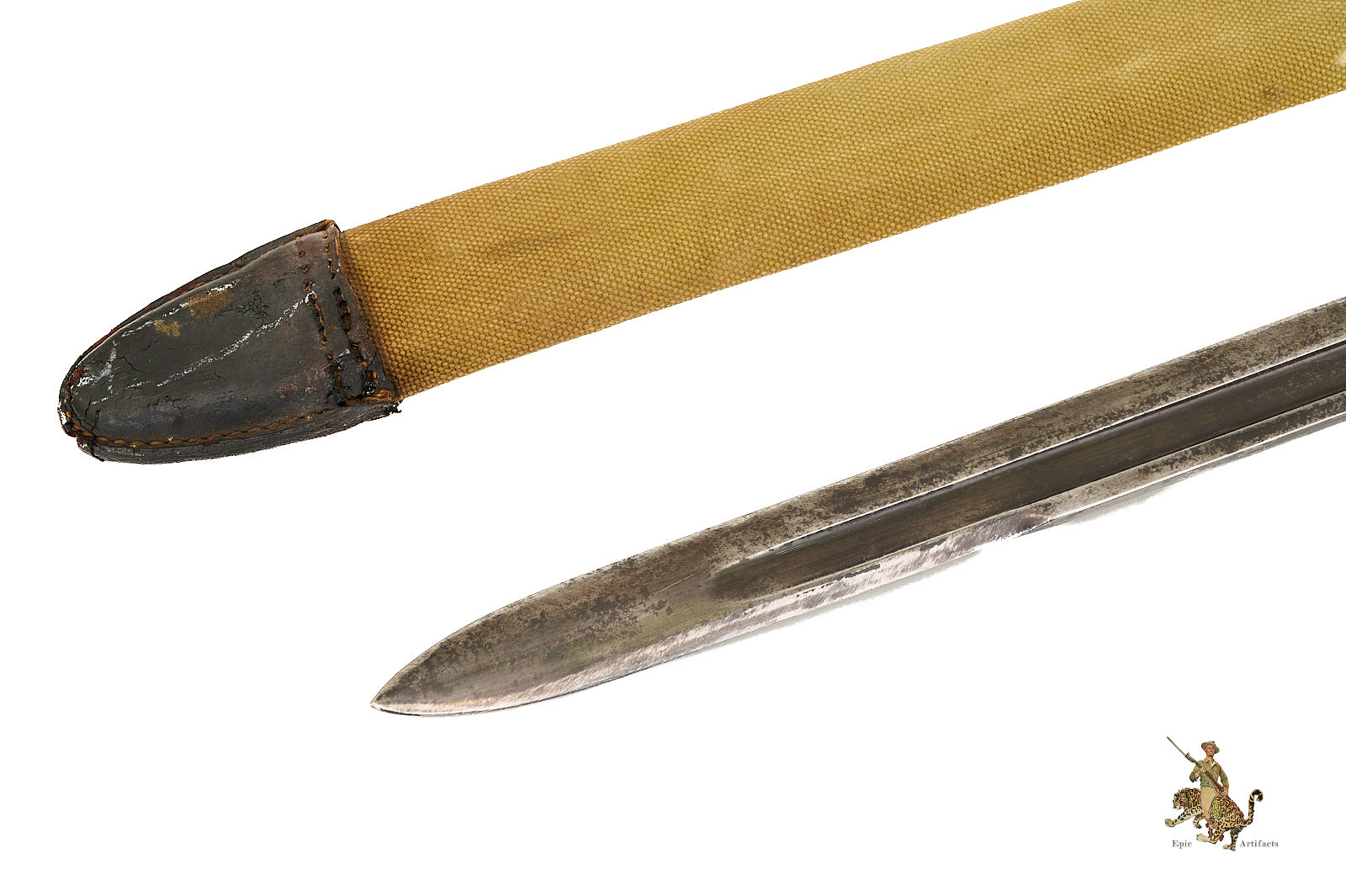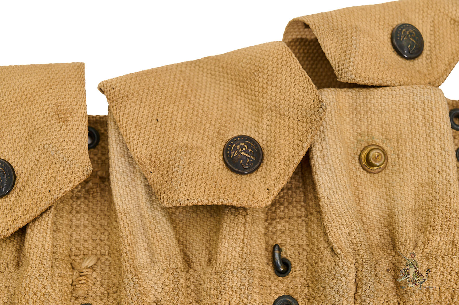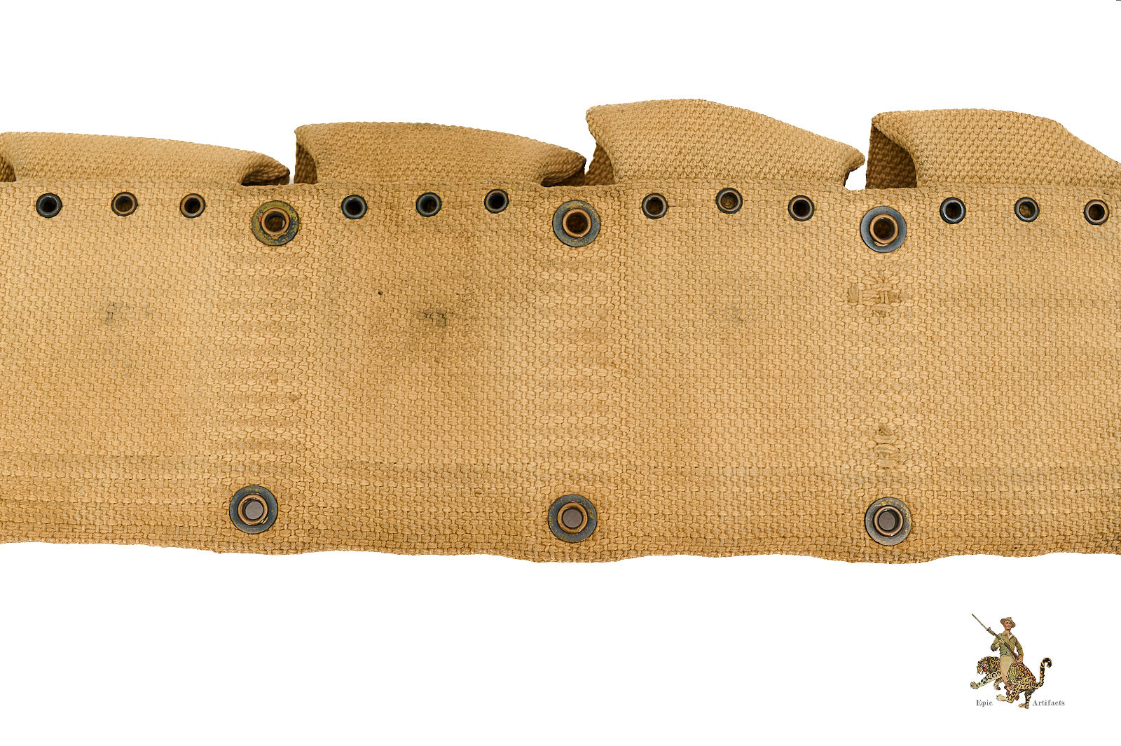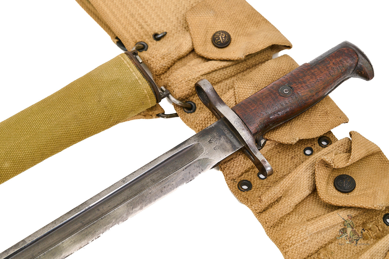 Also included is a Model 1906 bayonet, clearly marked “US 4417” and “SA 1906,” retaining its full-length blade with strong edge and profile. It is housed in its correct canvas and leather scabbard, both remaining in excellent condition with tight stitching and sound structure. Completing the ensemble is an early eagle globe and anchor snap cartridge belt, well-preserved and fully functional, exhibiting only expected age-related wear.