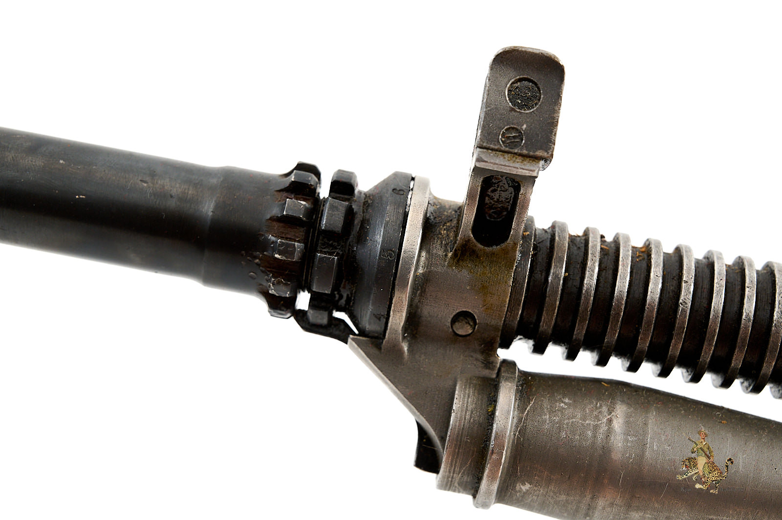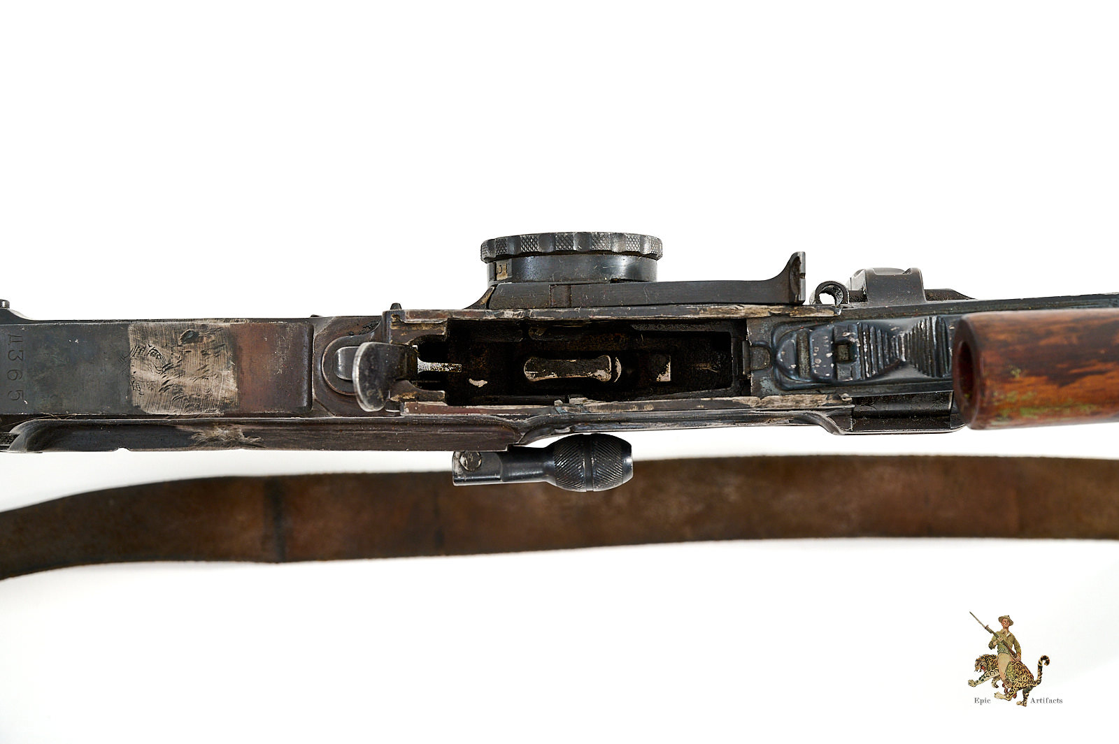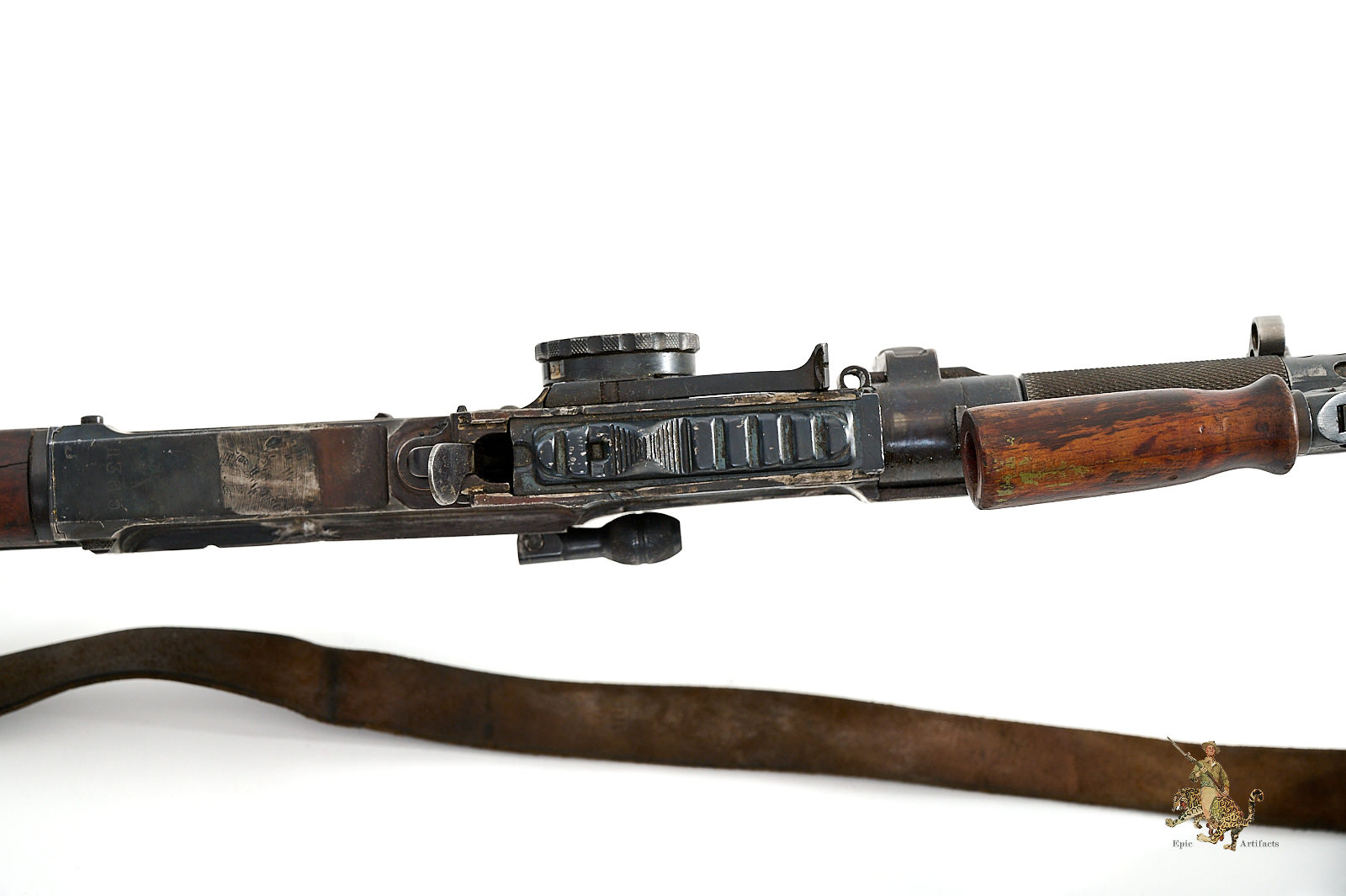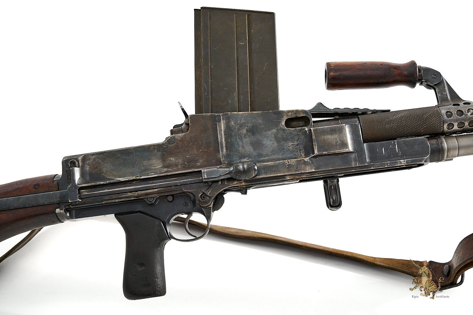 The piece is accompanied by its original-style magazine and leather sling, enhancing its display appeal. Preserved in excellent overall condition for its age, it exhibits minor wear and expected flaws consistent with period service, yet retains strong presence as a visually compelling and historically evocative display. This WWII Czech ZB-30 Display Light Machine Gun offers collectors an outstanding example of one of the most influential light machine guns of the Second World War.