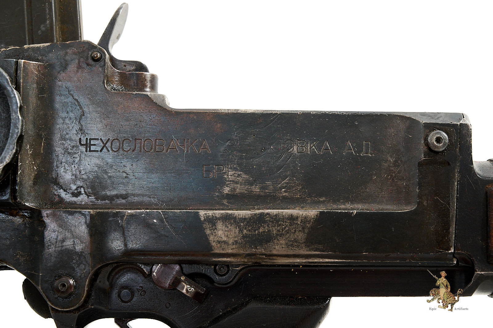 Product Description: A notable WWII Czech ZB-30 Display Light Machine Gun, crafted from its original receiver, professionally re‑welded and permanently blocked in full BATF‑compliant non-firing configuration. This example preserves its historical markings on the receiver and represents the renowned Czech light machine gun design that was widely adopted and employed by German forces during the Second World War, including use by SS units on the Eastern Front and in France.