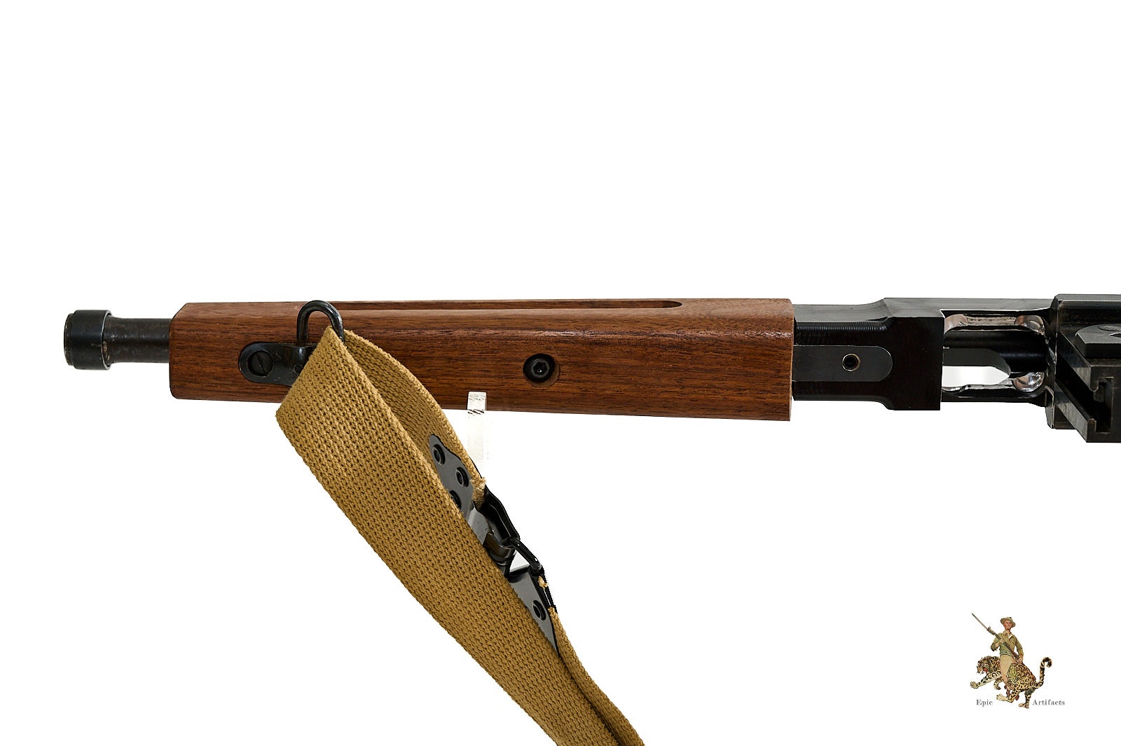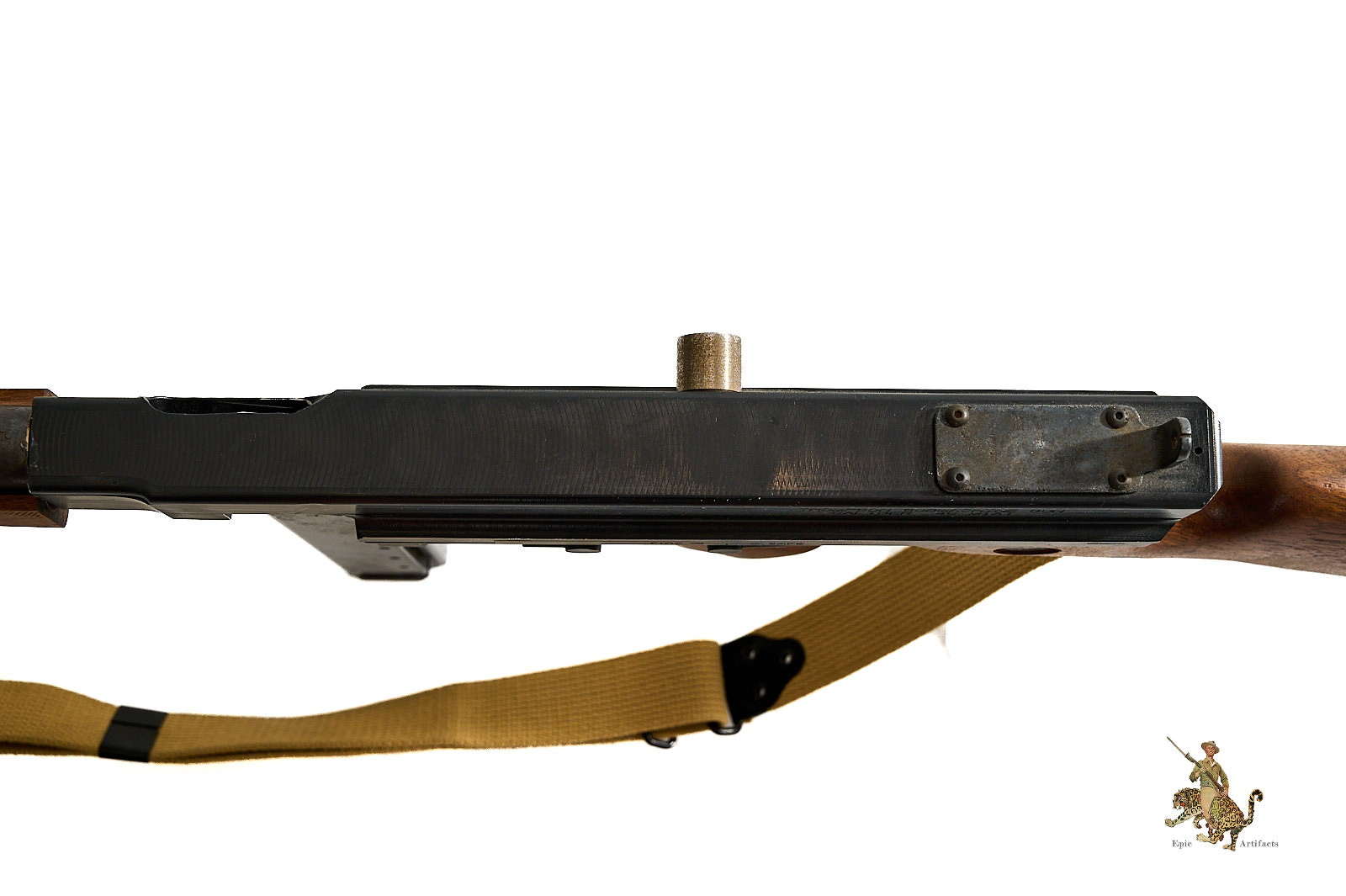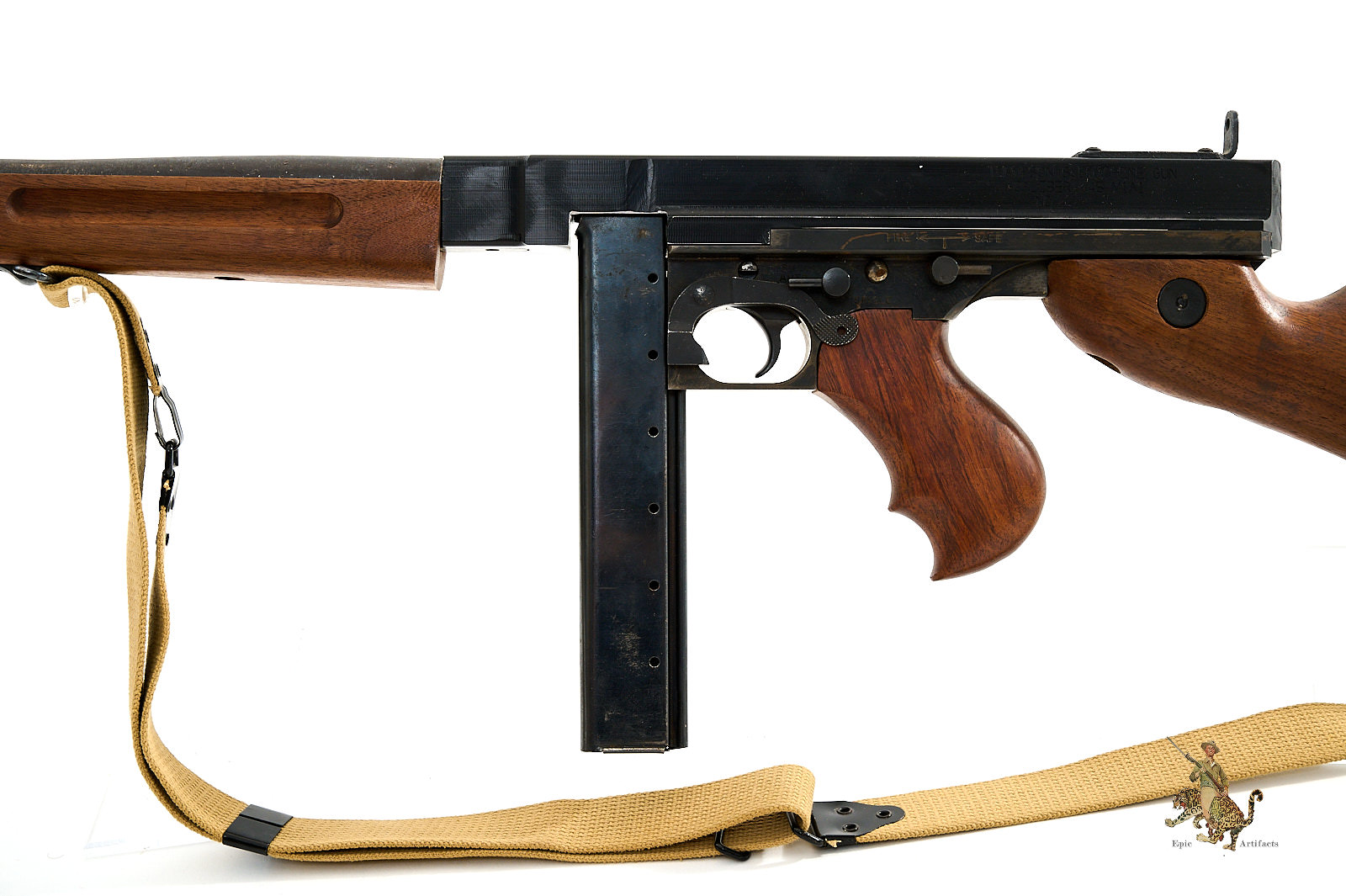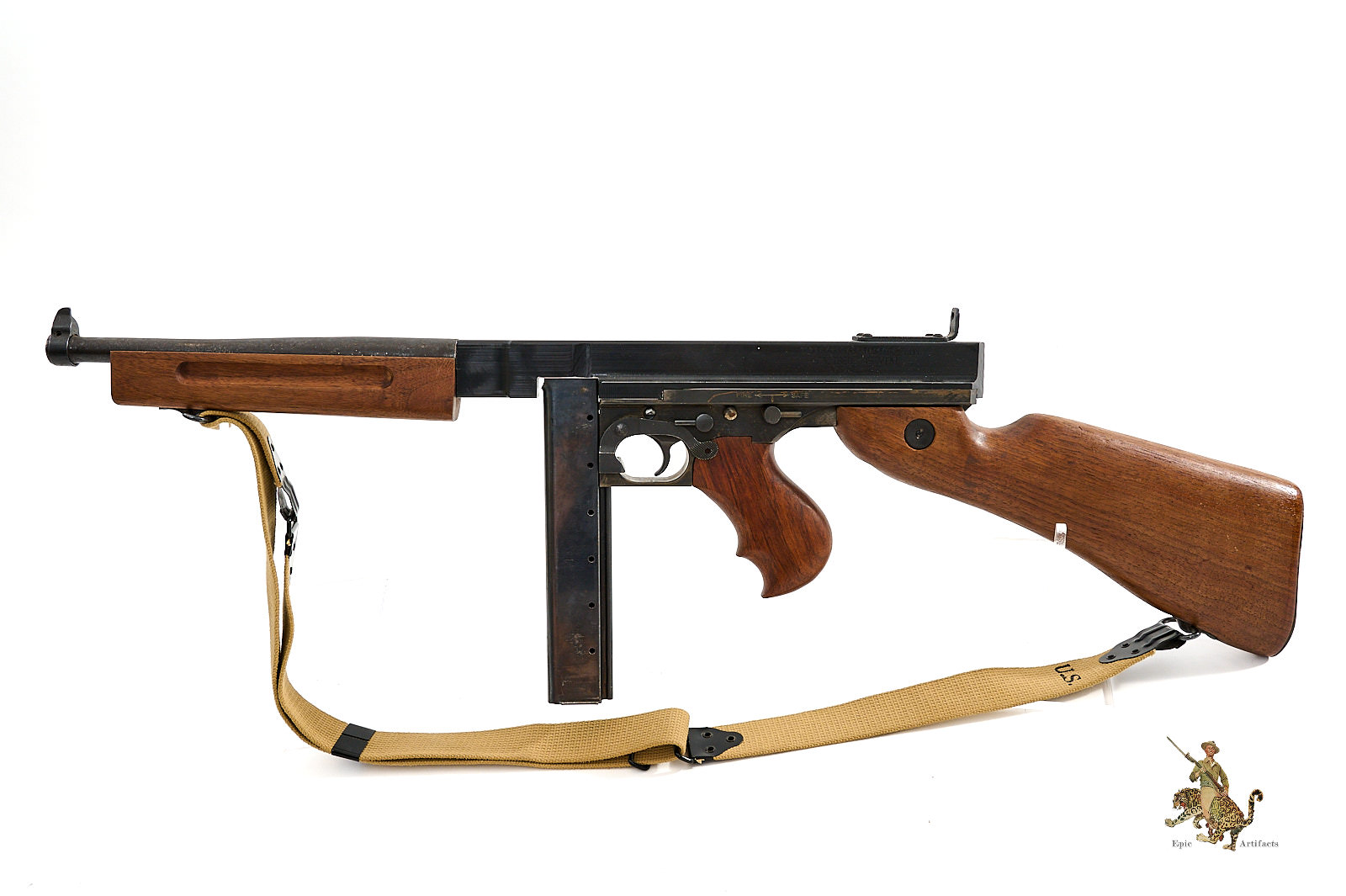 Widely issued to U.S. Army infantry, airborne units, Rangers, and Marines, the M1A1 Thompson saw service in every major theater of the war, from North Africa and Normandy to the jungles of the Pacific. Its high rate of fire and heavy caliber made it especially effective in close-quarters combat, urban fighting, and jungle warfare. Although heavier than later submachine guns, the Thompson earned the respect of American servicemen and Allied forces alike. Today, the M1A1 Thompson stands as one of the most recognizable small arms of World War II, representing both American industrial strength and frontline combat experience.