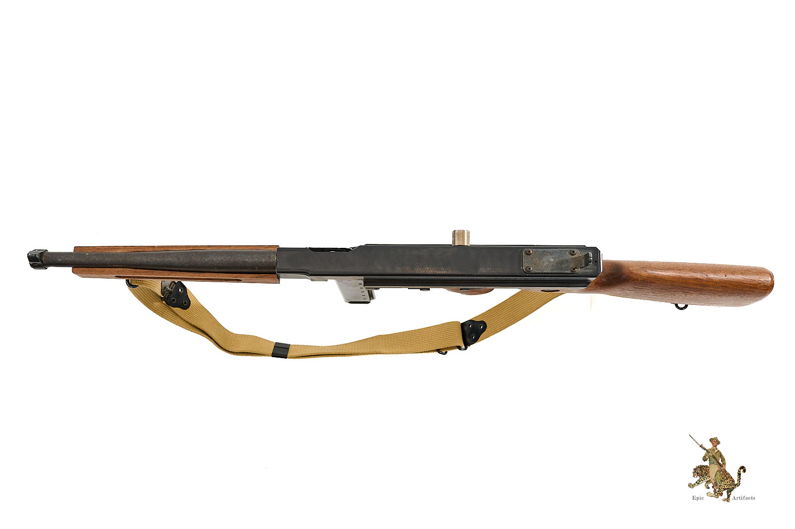 Preserved in excellent overall condition, this WWII US M1A1 Thompson Display Machine Gun is accompanied by a correct magazine and sling, further enhancing its display appeal. With its strong visual presence, honest condition, and faithful wartime profile, it offers collectors an outstanding opportunity to acquire a museum-quality display piece representing one of the most recognizable U.S. infantry weapons of the Second World War.